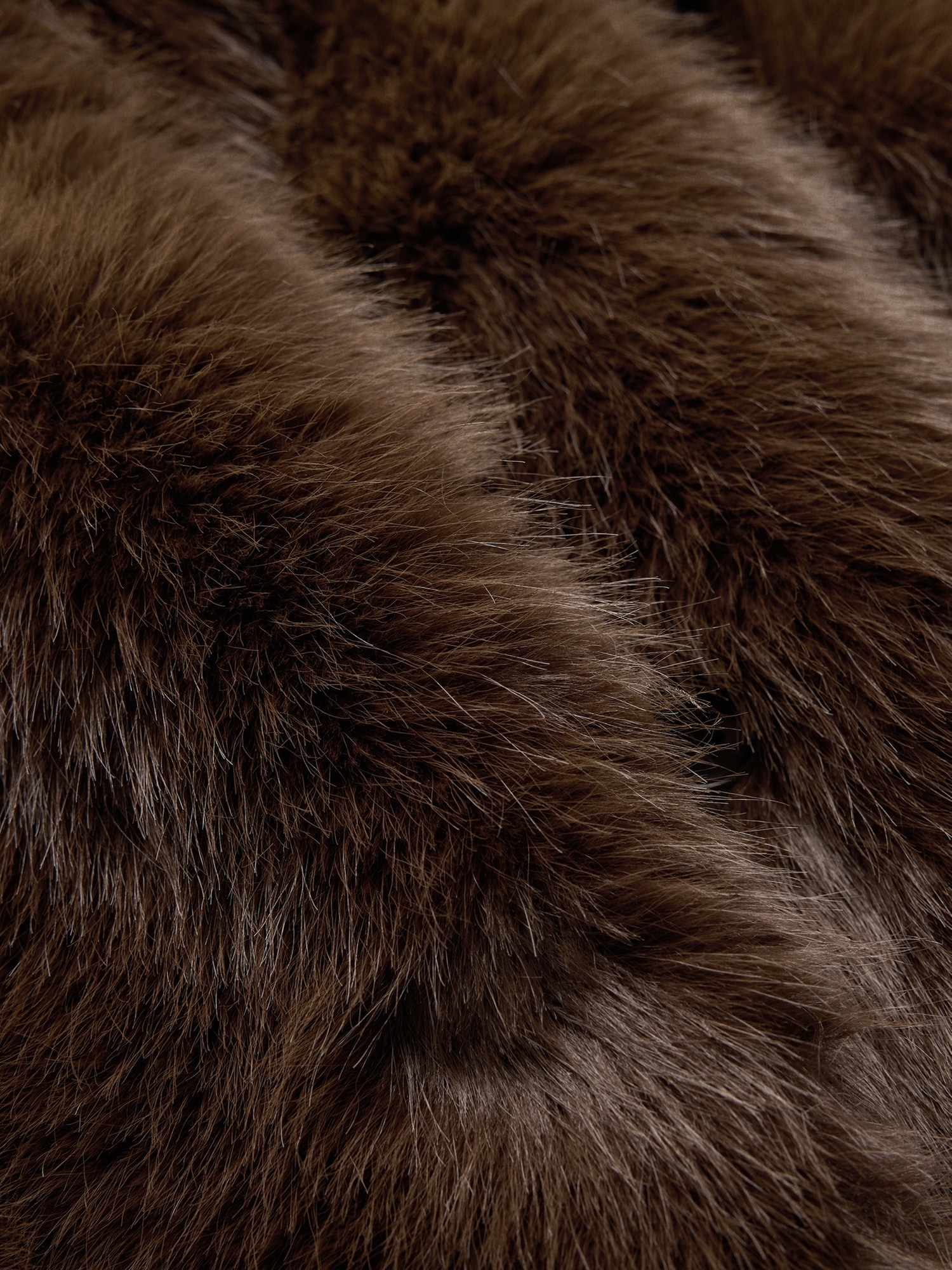 Cut with a tailored silhouette in a midi length, this warm coat is crafted in a faux fur fabric we selected for its incredible softness and warmth.