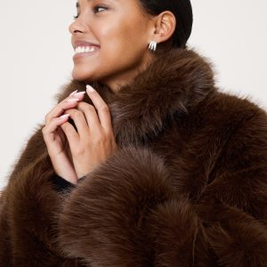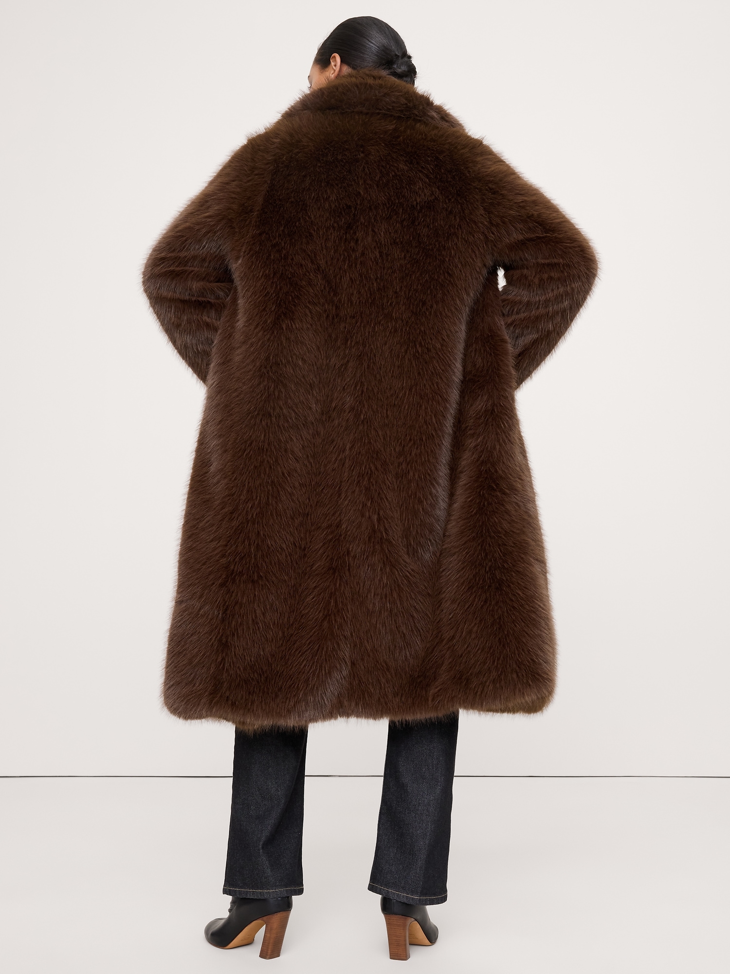 Cut with a tailored silhouette in a midi length, this warm coat is crafted in a faux fur fabric we selected for its incredible softness and warmth.