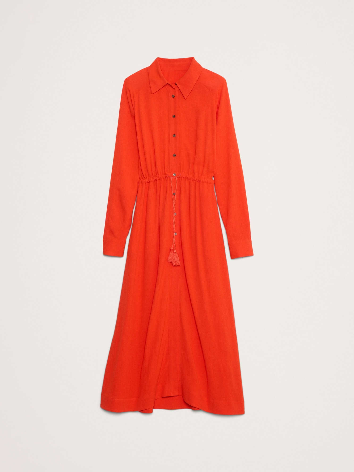 We kept the fit of this shirt dress easy, adding a tassel tie to help define the waist. Crafted in a lightweight fabric that’s ideal for summer.