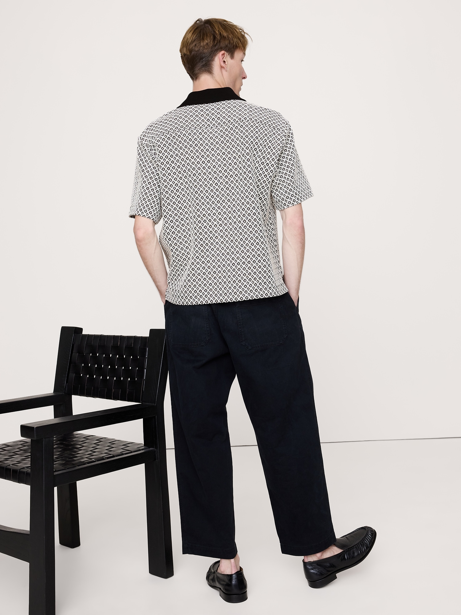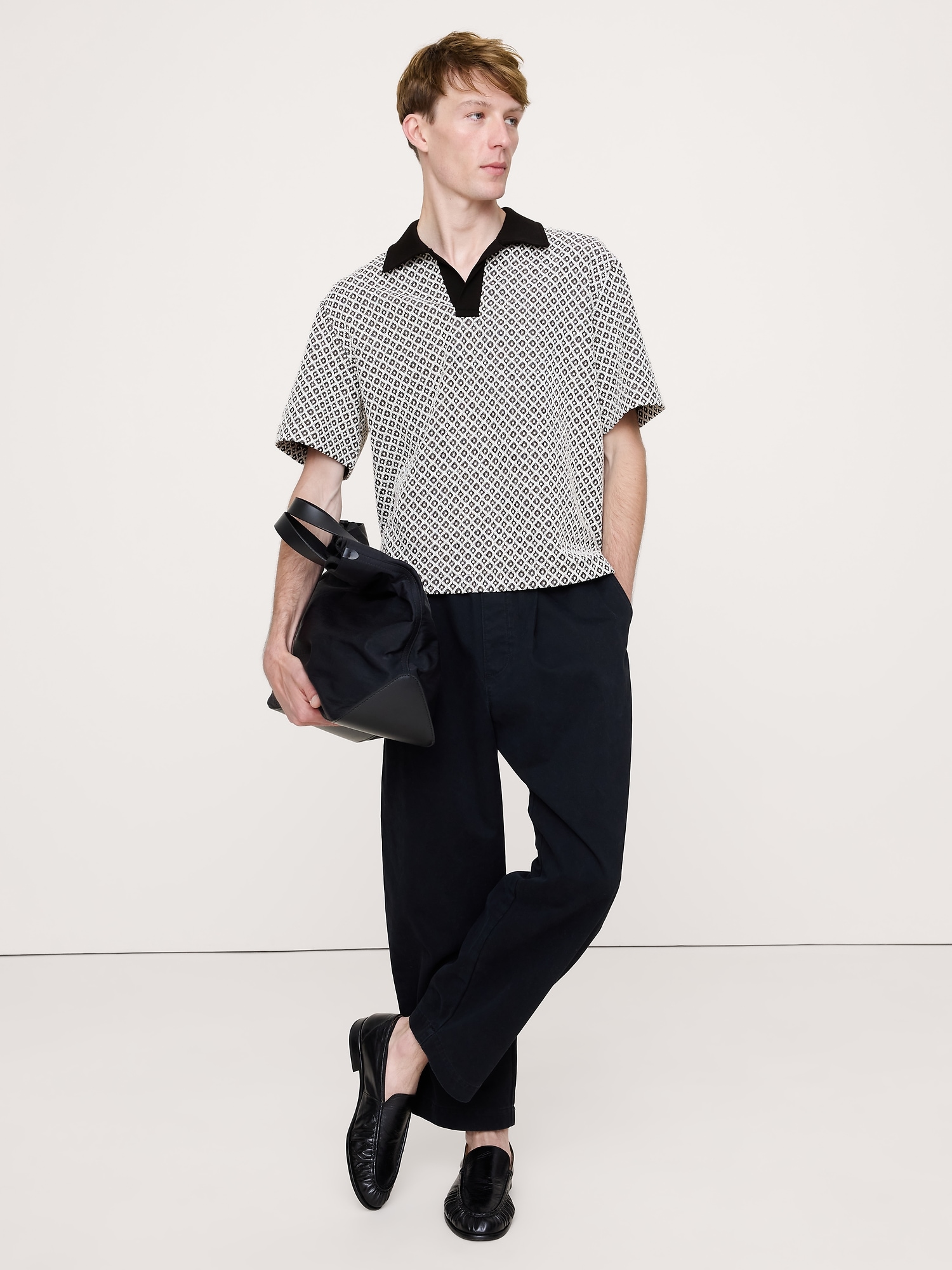 We’re on a mission to make a polo that feels like the best retro finds. This one delivers with a boxy fit and a geometric textured stitch, in a soft cotton blend.