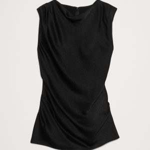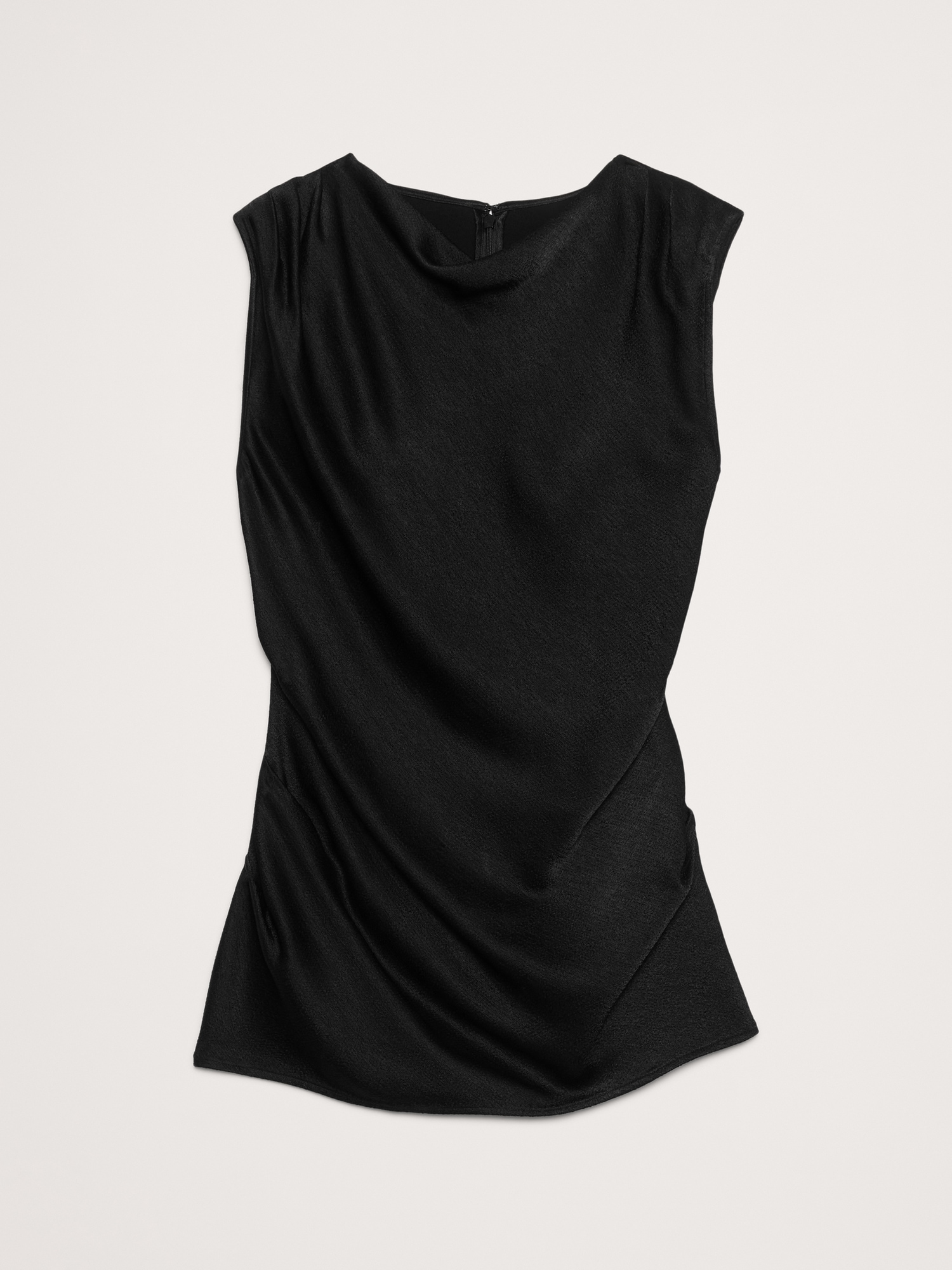 We designed this draped top for days when you need to look good and feel comfortable, cut in a beautiful hammered satin we love for its luxe, textured look.