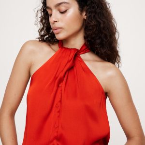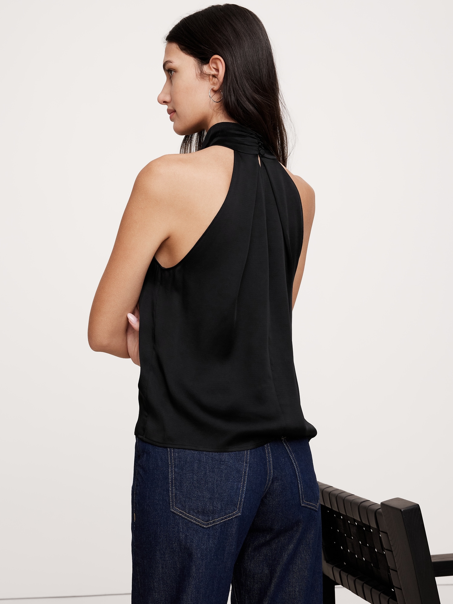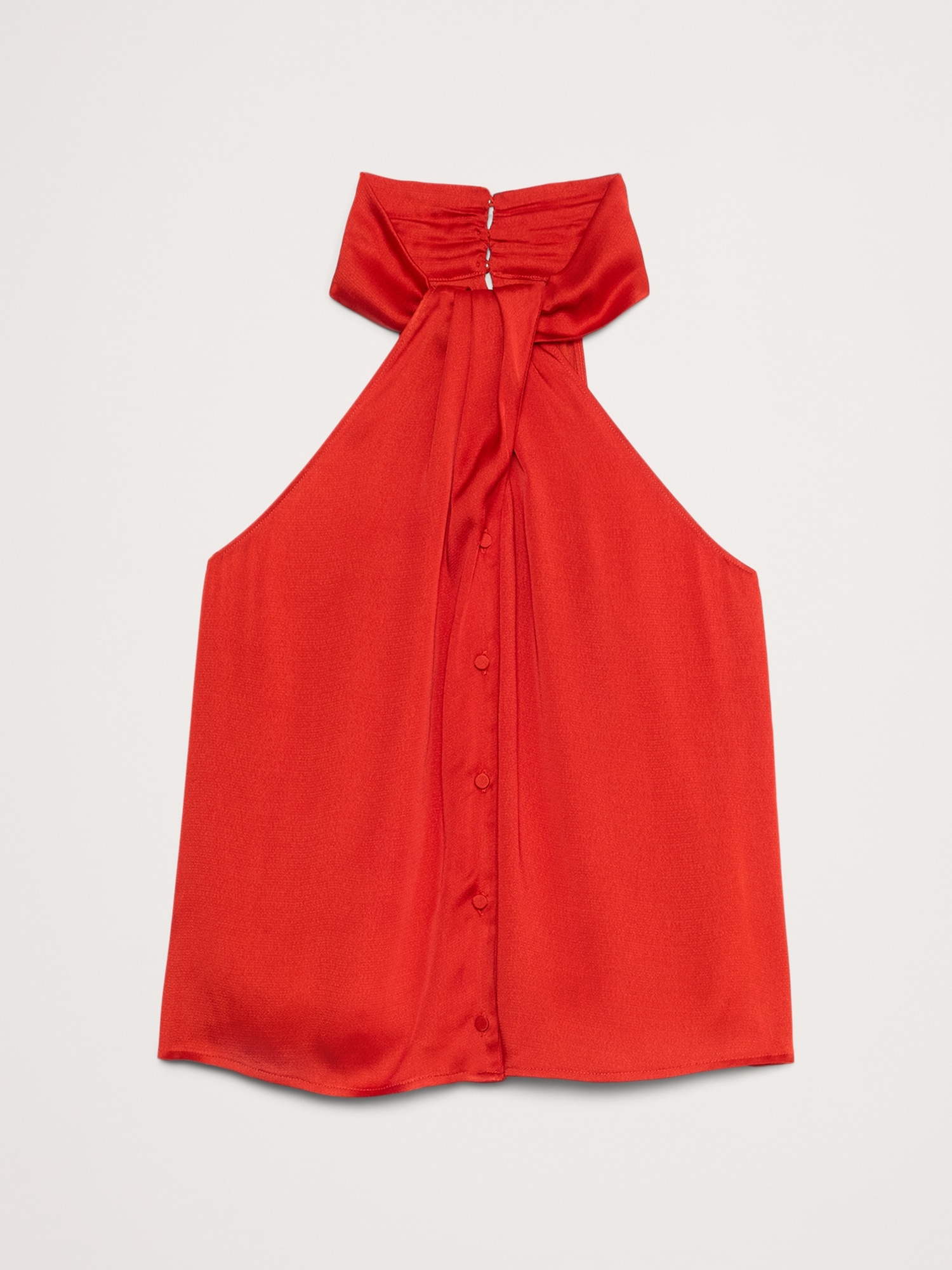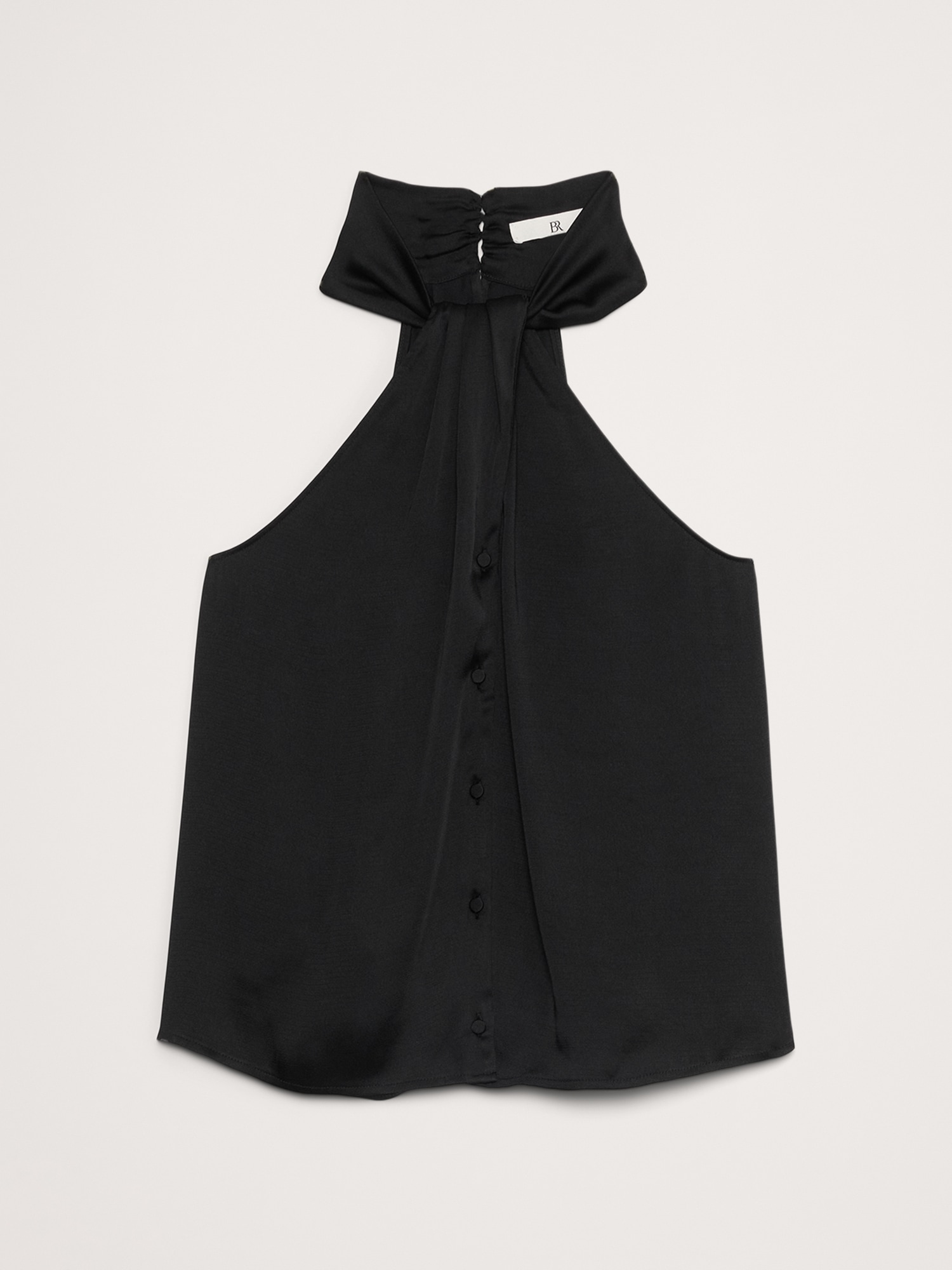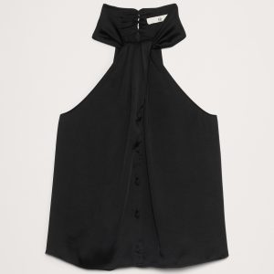 Hammered Satin Halter Button-Down Top