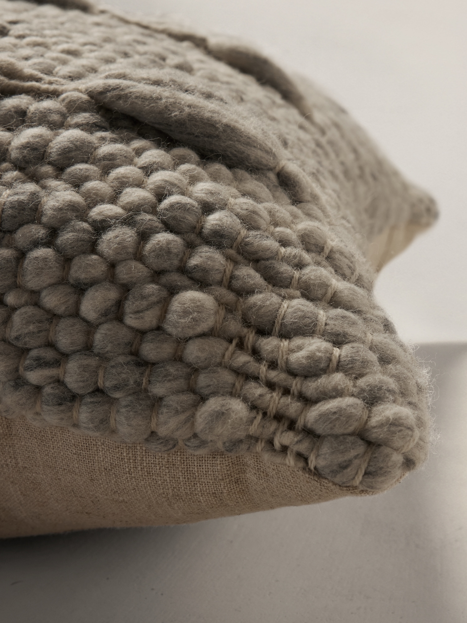 Delight in the luxurious texture of natural materials, these beautiful pillows are woven from a mix of undyed Merino wool. These fibers are carded and woven by hand to create spectacular and irregular dimension, ensuring no two pieces are exactly alike. Why hand-carded? Increasingly uncommon, hand-carding wool—a specialized process akin to combing out fibers before they’re spun into yarn—produces a luxuriously irregular effect that reveals the natural beauty of this Merino wool as well as the expert hand of its maker, something which we celebrate. Canvas reverse panel. Handmade in India. Pillow inserts are sold separately and are sized slightly larger than our pillow covers to create a fuller effect. #619459