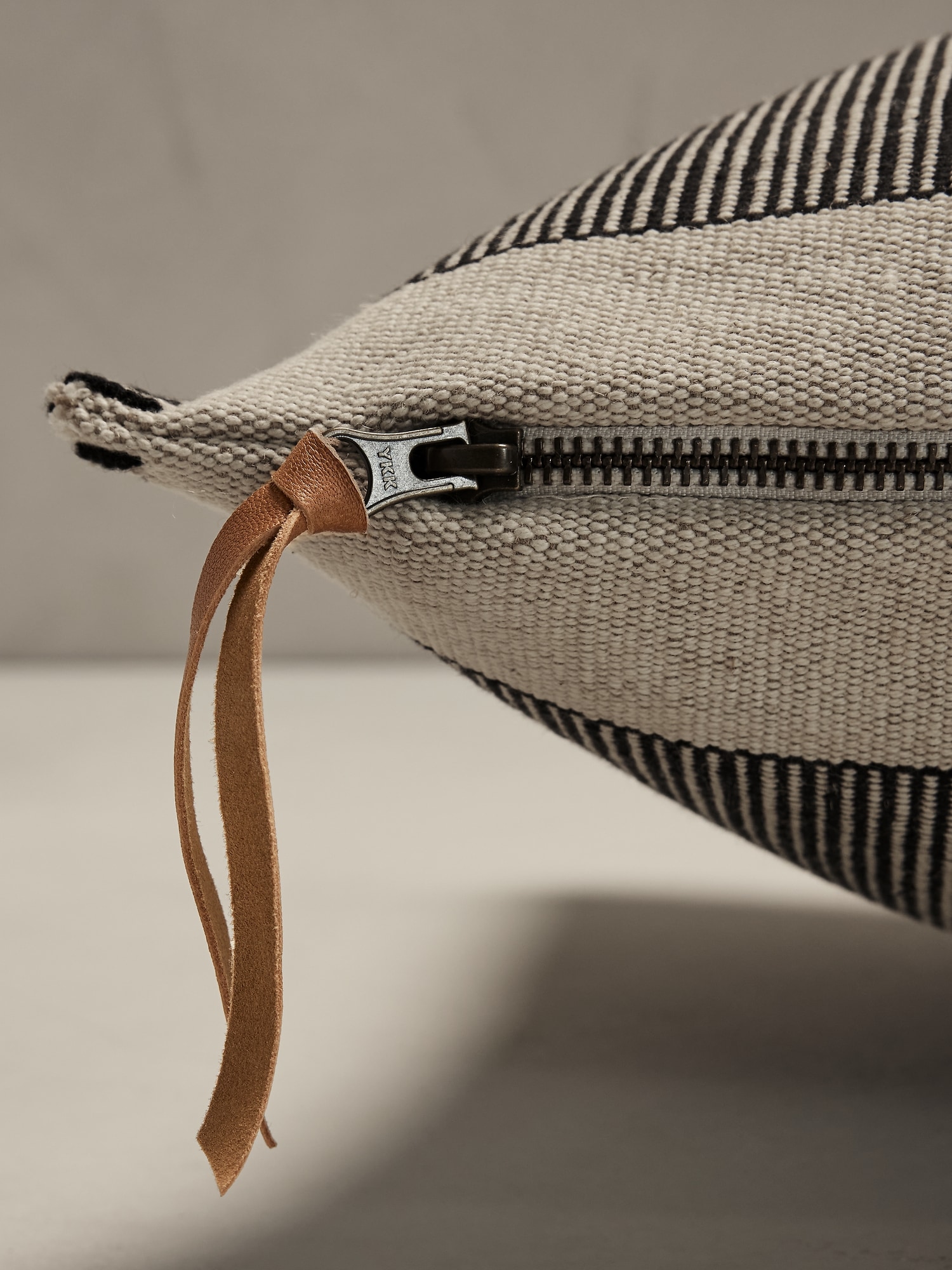 Distinctive and beautiful, soft cotton is spun with the incredible strength of jute fibers and hand-woven using ancient techniques to form remarkable throw pillow covers. Intricate touches, like whip stich detailing and a brass zip closure give a refined juxtaposition against the luxurious natural texture of this remarkable fabric. Pillow inserts are sold separately and are sized slightly larger than our pillow covers to create a fuller effect. Handmade in India. #619419