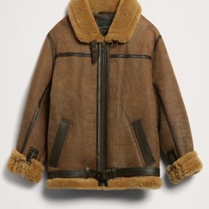 A thoroughly modern take on a classic flight jacket, channel the energy of your inner aviator with this luxuriously soft and cozy shearling coat.