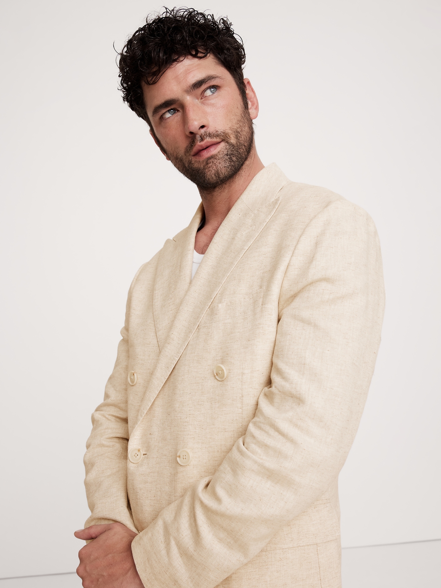 Herringbone Cotton-Linen Double-Breasted Suit Jacket