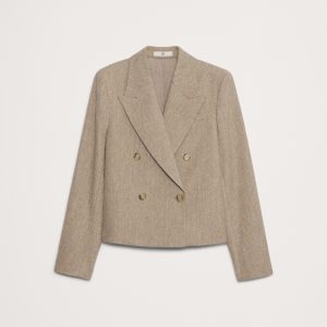 This double-breasted blazer is cut for a boxy, cropped fit with sharp shoulders. For fabric, we reached for a beautiful wool flannel fabric we love for its herringbone weave and its ability to carry you through cooler seasons.