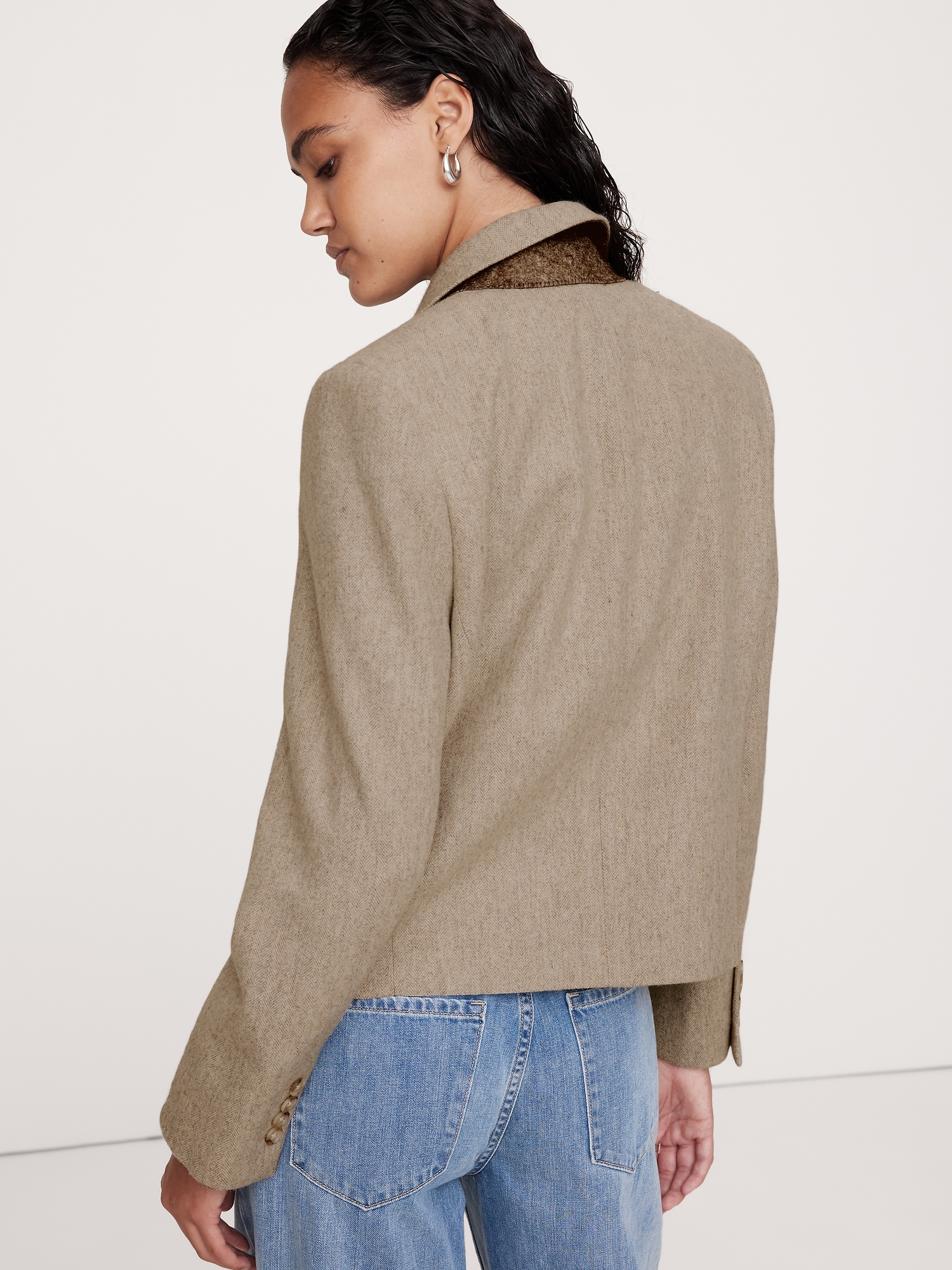 Herringbone Wool Flannel Crop Blazer