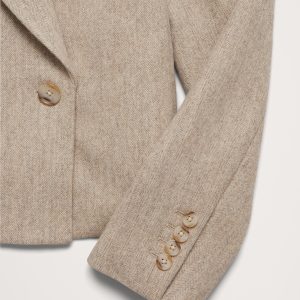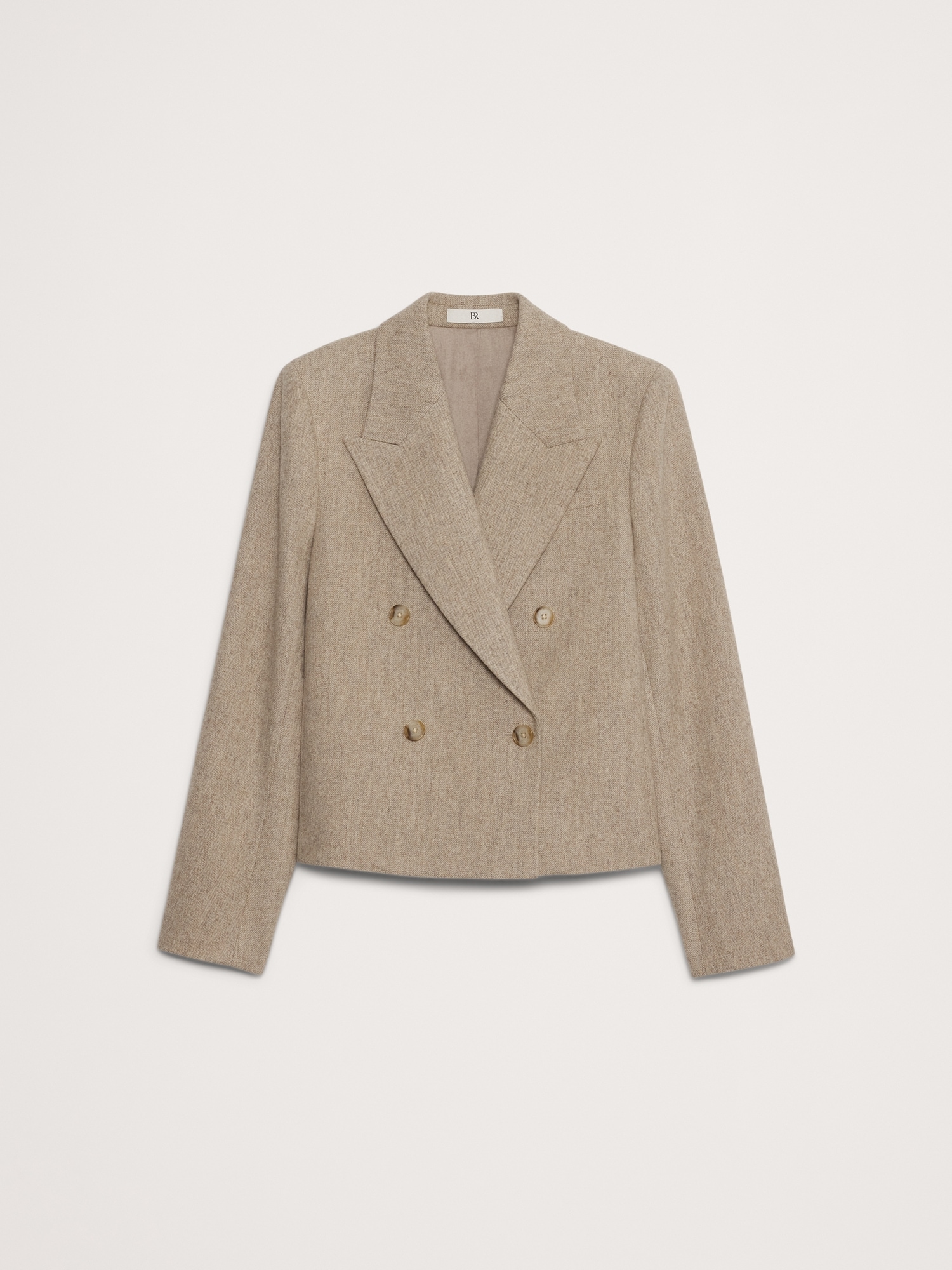 This double-breasted blazer is cut for a boxy, cropped fit with sharp shoulders. For fabric, we reached for a beautiful wool flannel fabric we love for its herringbone weave and its ability to carry you through cooler seasons.