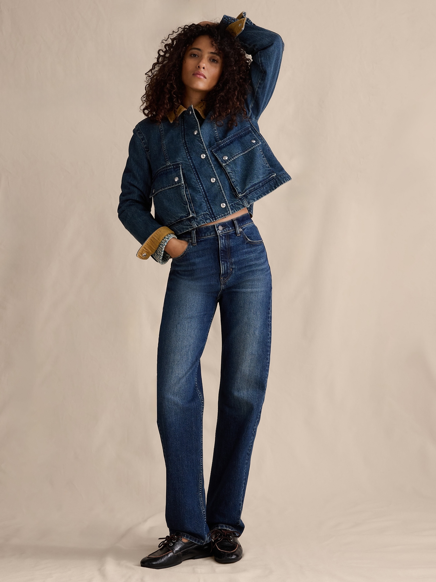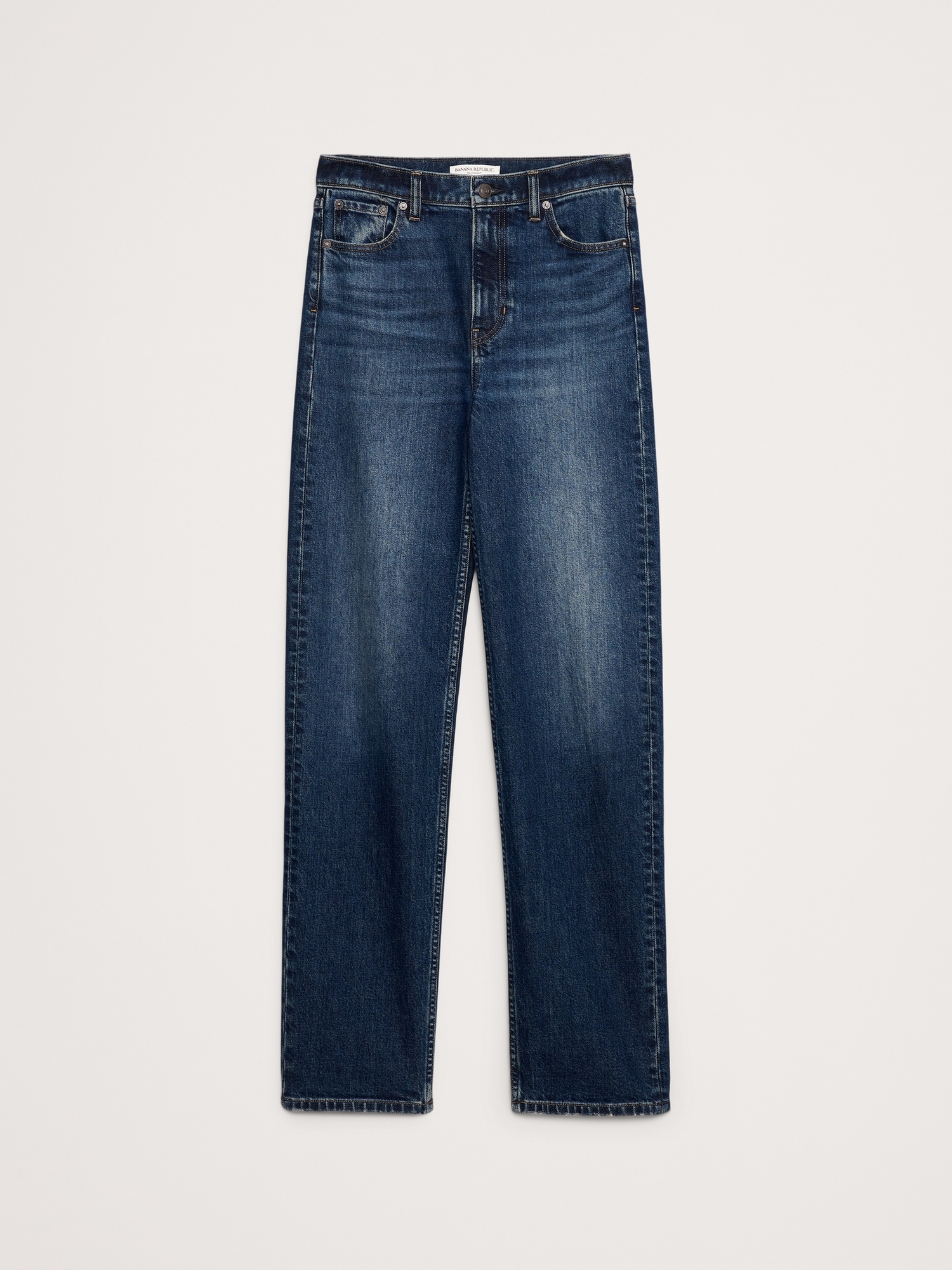 A nod to the 90s. These straight-leg jeans have a high-rise and stovepipe-straight fit through the leg. Our designers selected a soft denim with stretch for comfort.