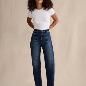 High-Rise 90s Straight Fit: High-rise (12\”). Fitted through waist, hip, and thigh with a straight leg. Full length.