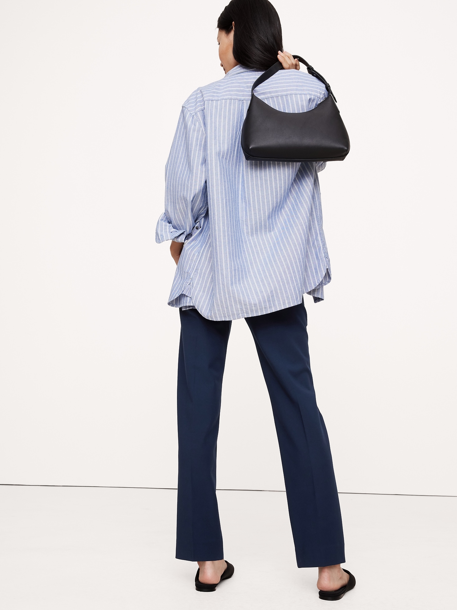 We love when a pant that looks as good as it feels, so we cut this high-rise slim pant in our best-selling Refined Bi-Stretch—a favorite for its stretchy feel and soft structure. Look closely: our designers chose a Hollywood waistband and darts at the back waist to create a high-rise with clean lines.