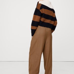 Our take on the season’s barrel-leg pants, cut in an wool-blend flannel we love for its smooth look and high stretch. Plus, we opted for a drawstring waistband, pleated front, and pull-on design. Barrel Leg: High rise. Fitted waist, straight through the hip and thigh with a relaxed, barrel leg. Full length Elastic waistband (pull-on design) with drawstring closure. Front and single back pockets. Unlined. #826498