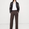 Zip fly with hook-and-bar closure. Belt loops.