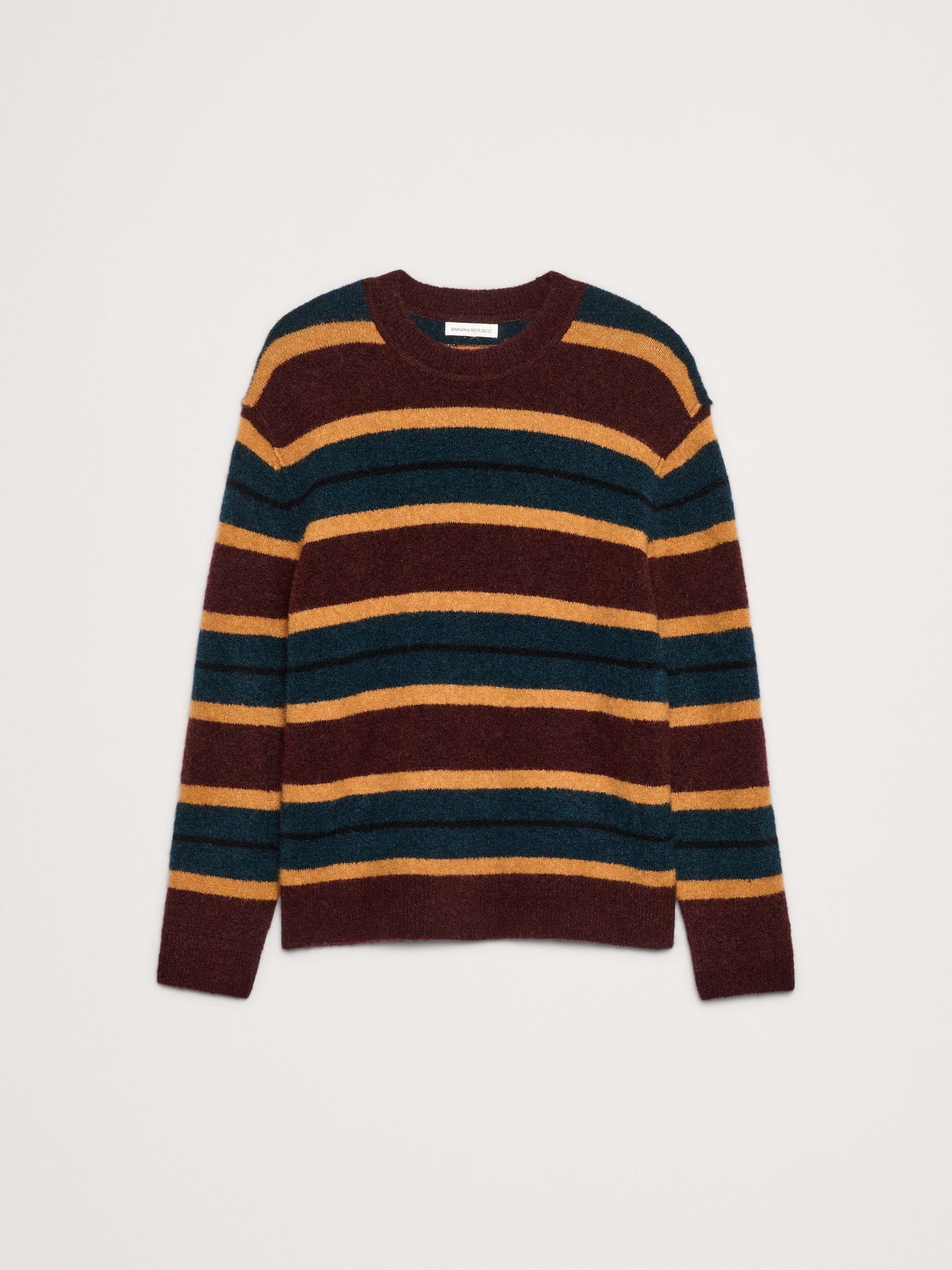 We love the cozy, brushed finish of this extra-warm alpaca and wool blend so we put it to use in a classic crew-neck silhouette with stripes that show off its rich colors.