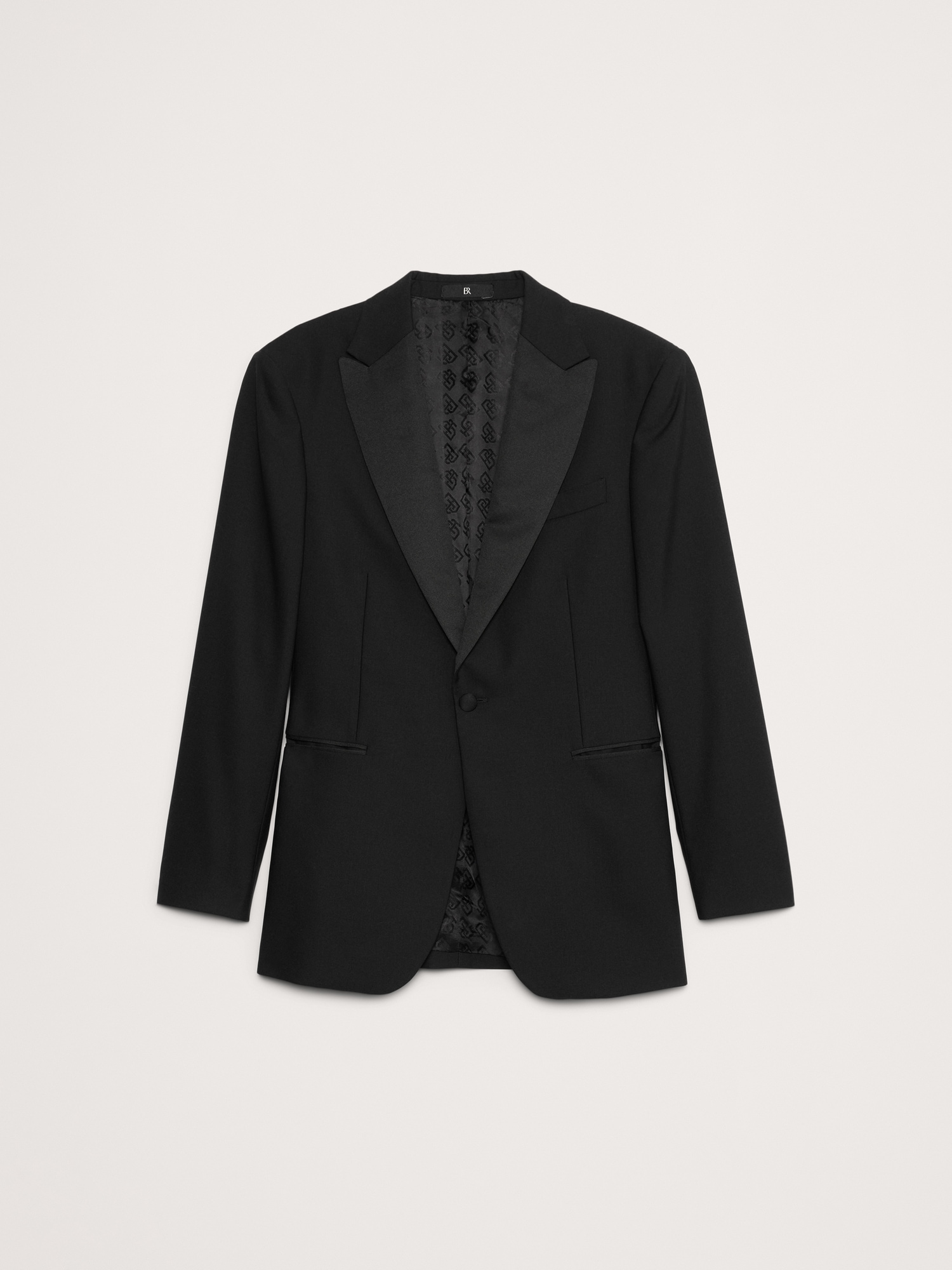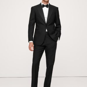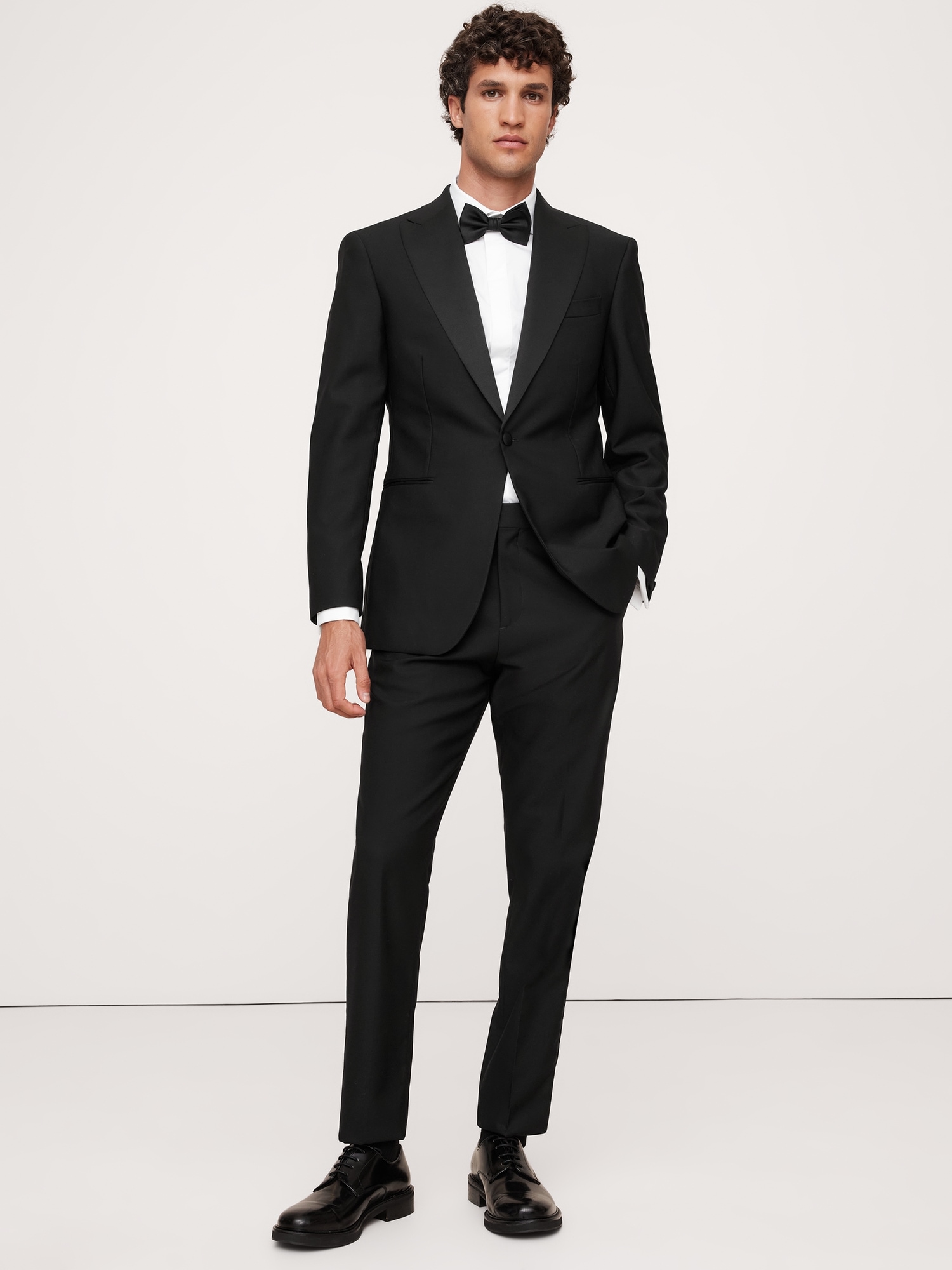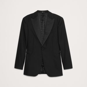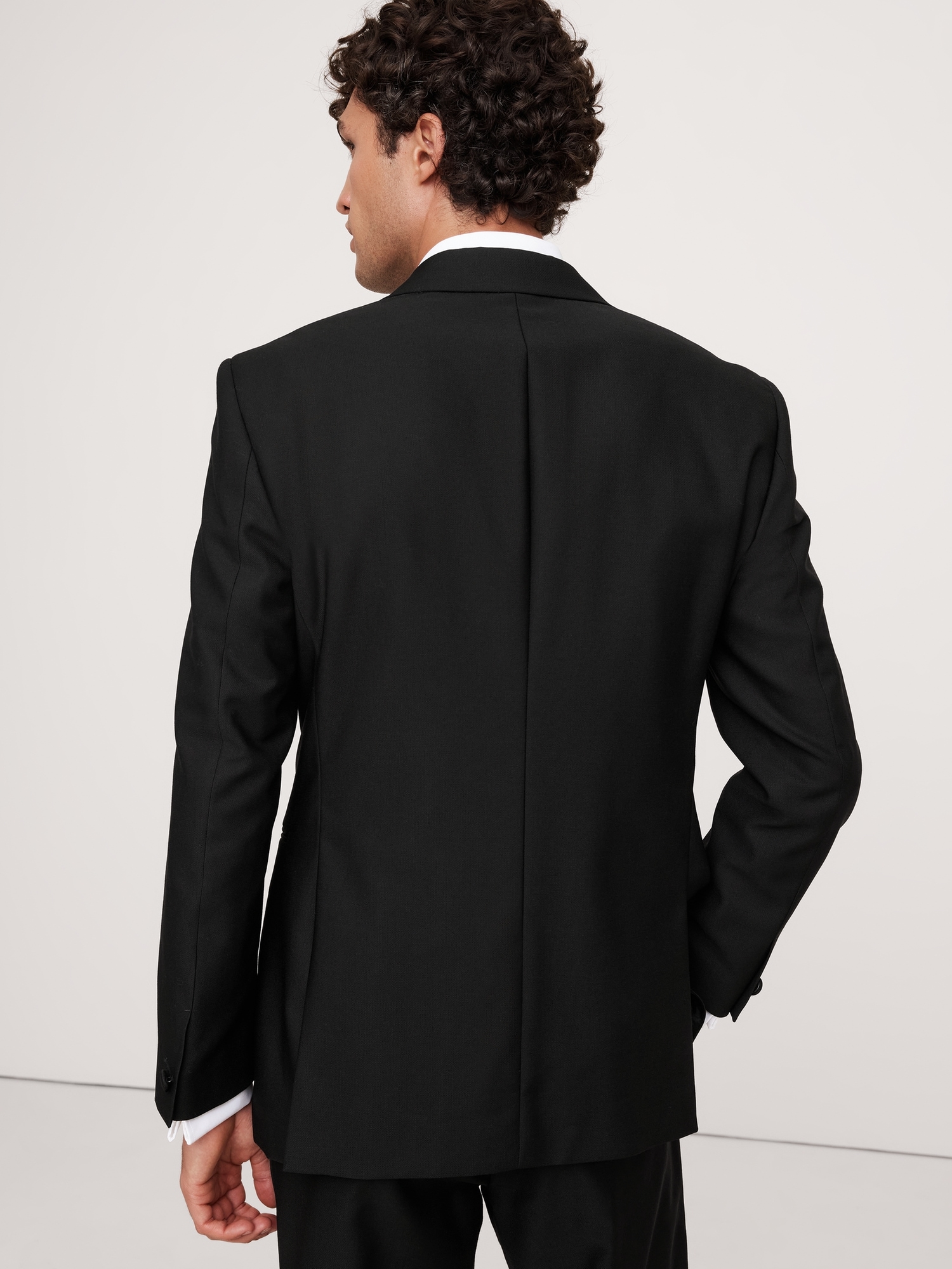 Timeless tailoring, this exquisite black tuxedo jacket offers elevated style to last a lifetime. Made from Italian virgin wool, our designers employed a classic Barathea weave, a sharp roped shoulder construction and our tailored slim fit for a natural look that’s especially polished. Ottoman pockets finish the look with understated sophistication.