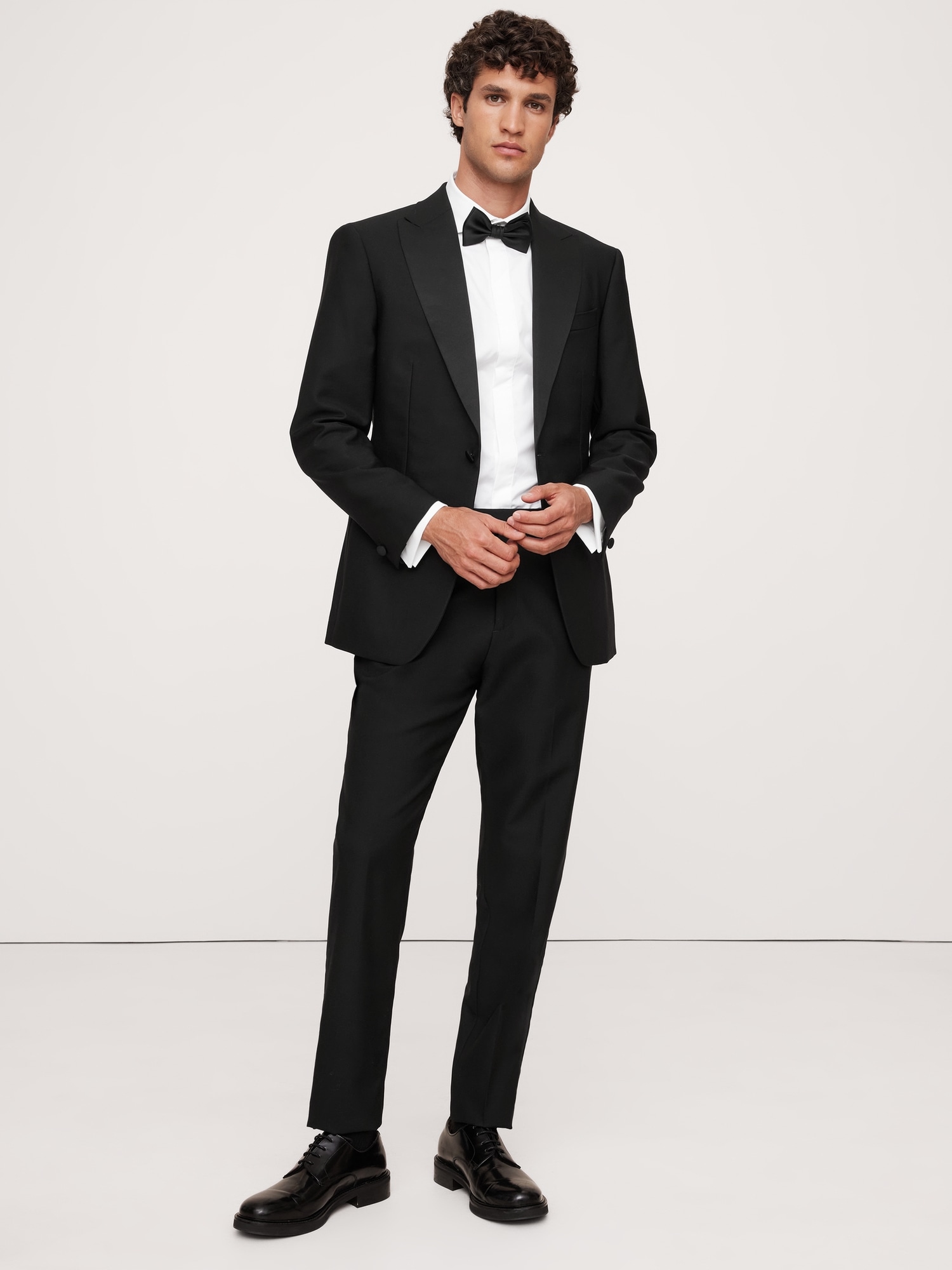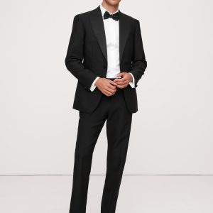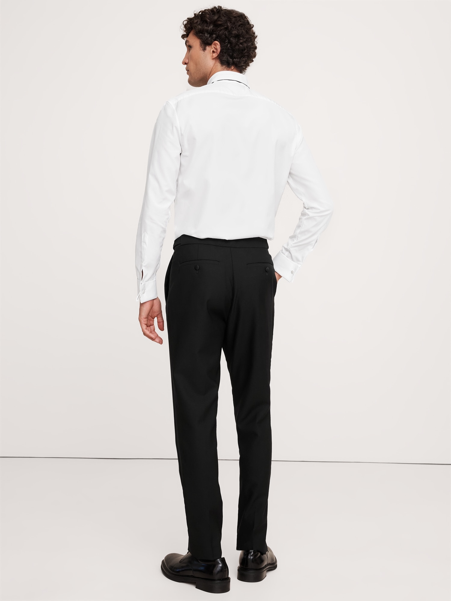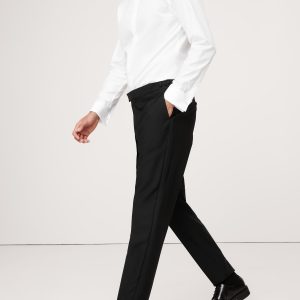 Exquisitely tailored, these timeless tuxedo pants offers elevated style that stands up to the seasons. Made from Italian virgin wool, our designers employed a classic Barathea weave, classic faille side stripes and our tailored slim fit for a natural look that’s especially polished. Button tabs at the waist offer a customizable fit.