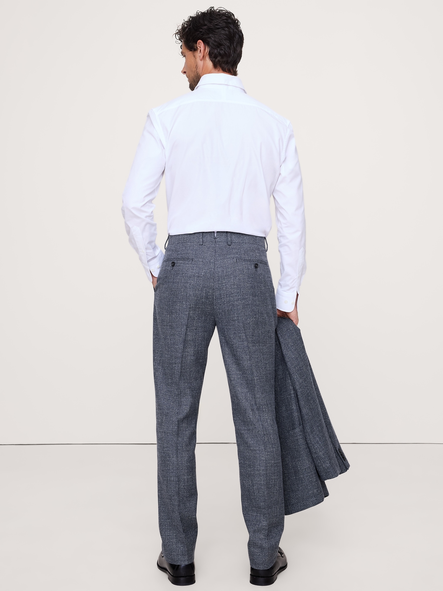 Belt loops and after-dinner split detail at back.