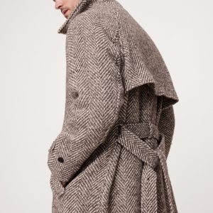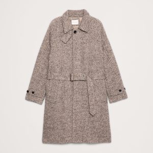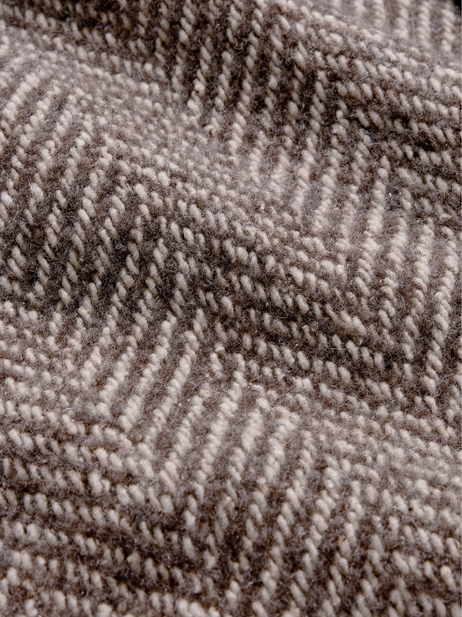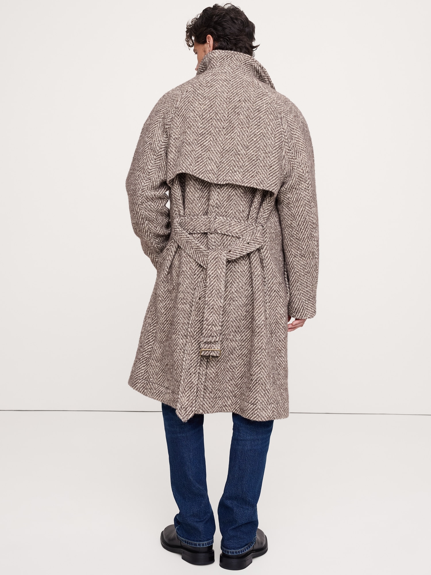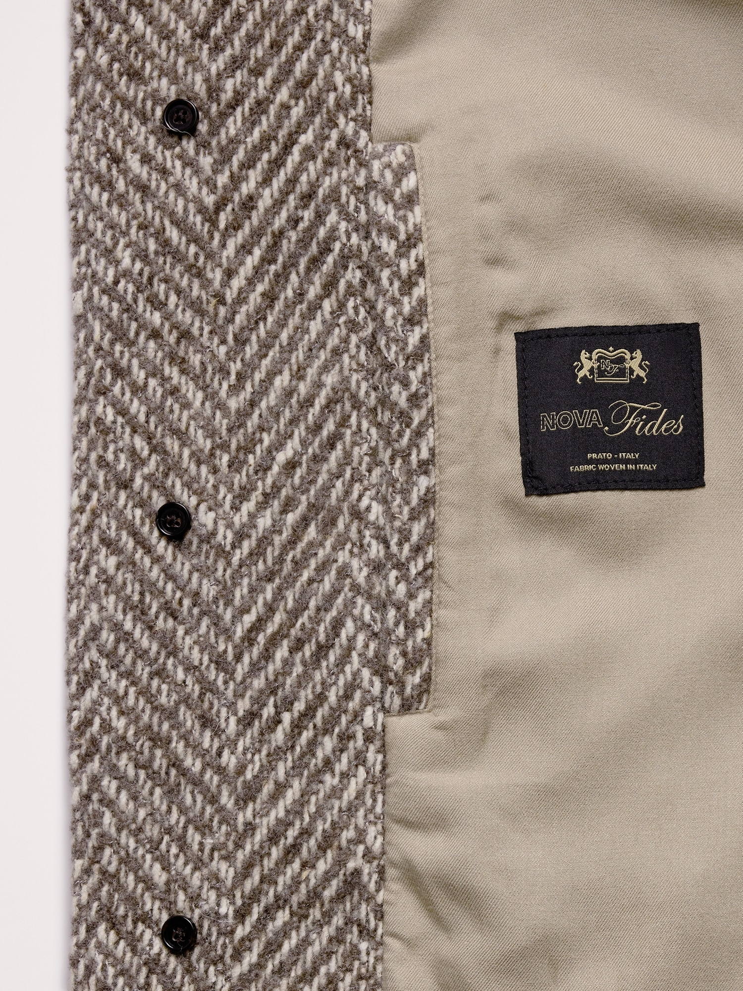 Modeled after the traditional Balmacaan coat, this piece is cut from an Italian, wool-blend fabric woven in a herringbone pattern with a beautiful tweed-like finish.