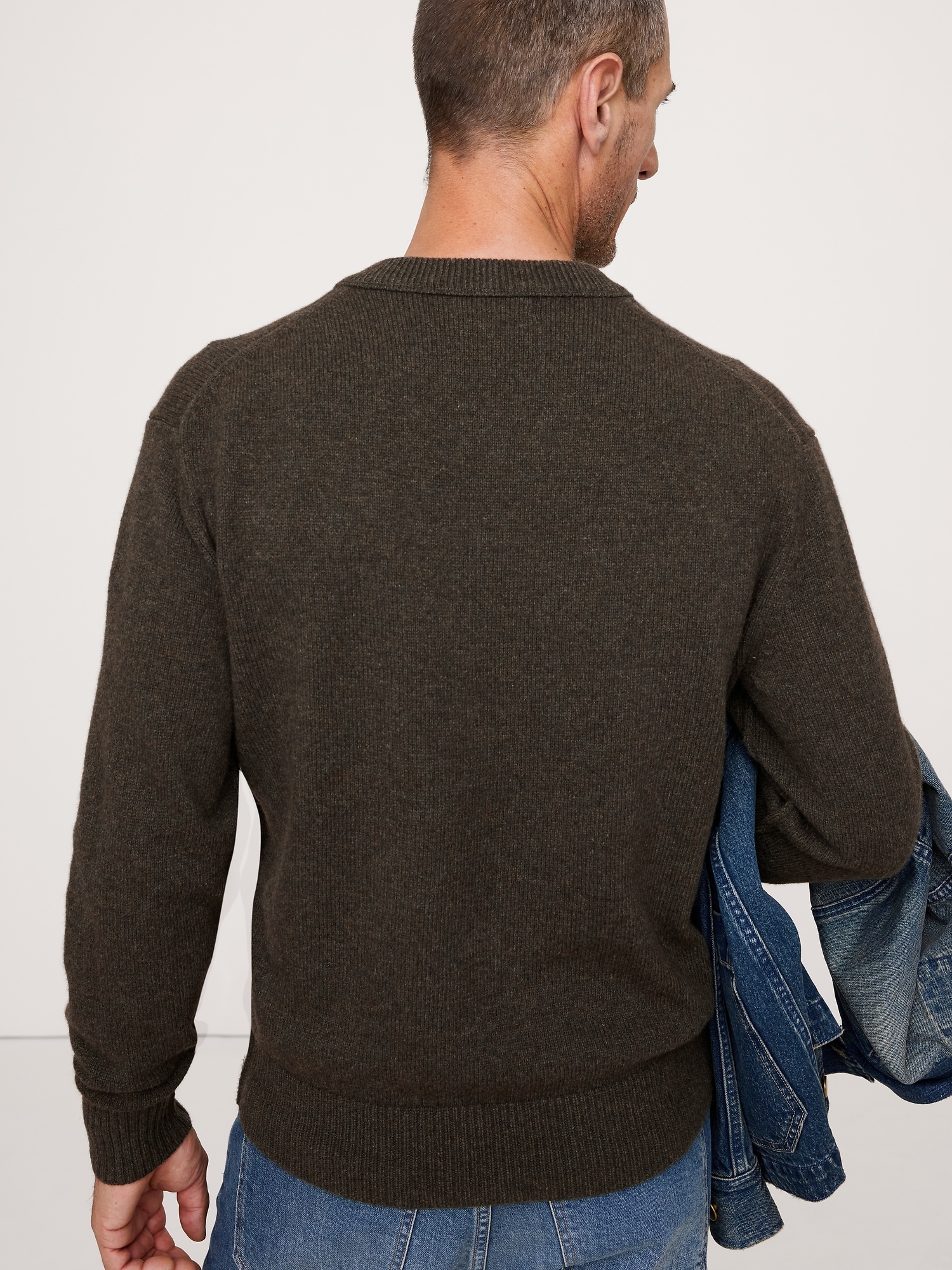 So soft, so warm, this classic v-neck sweater has exposed seams for a rugged look, knitted in our softest Merino wool blend from Italy.