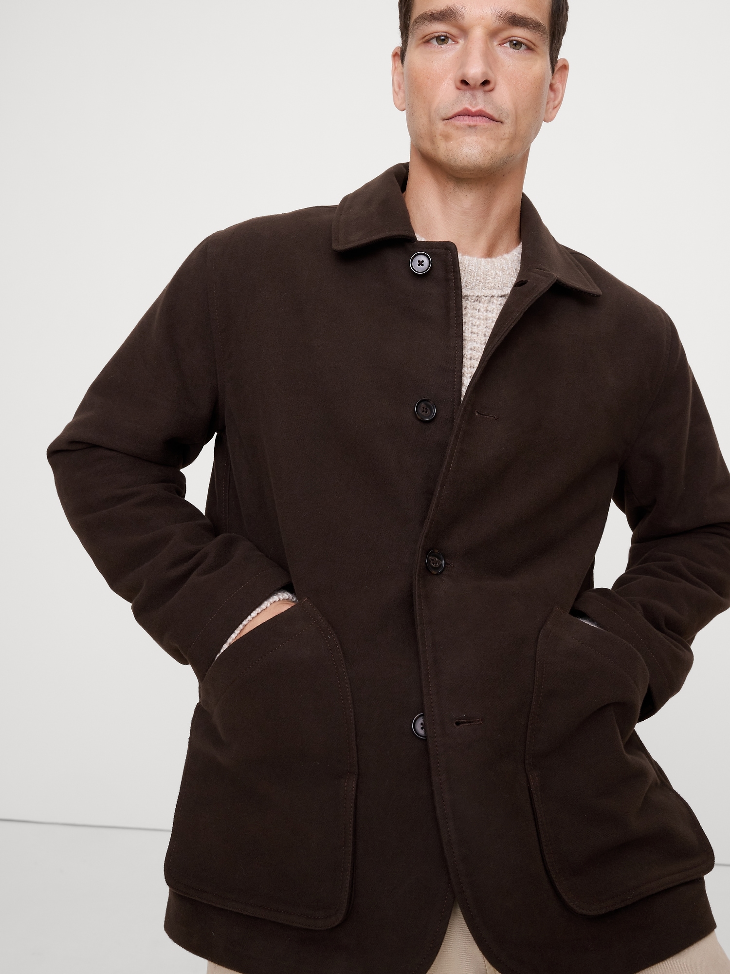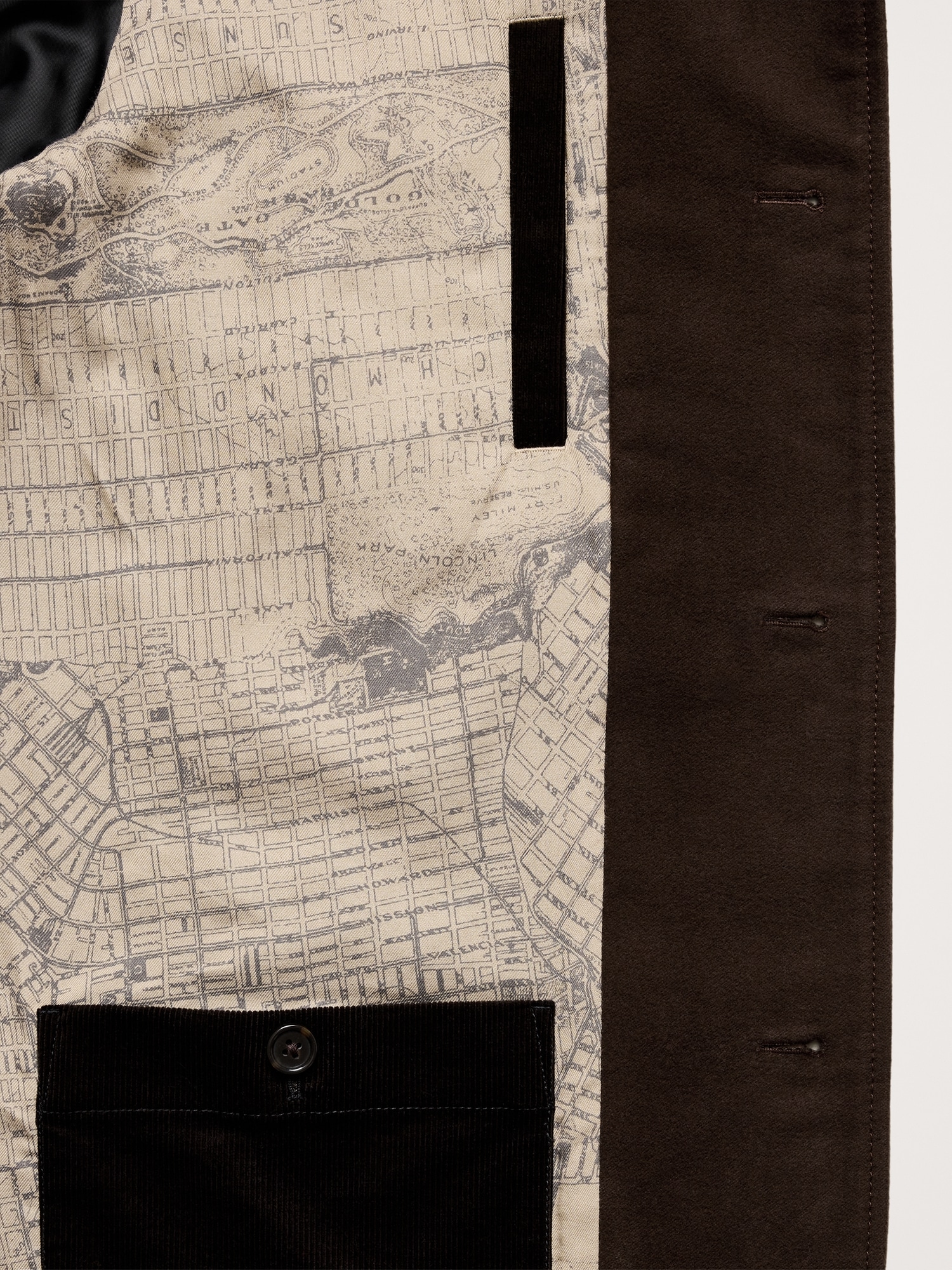 Our take on the historical walking jacket, we cut this one from Italian cotton moleskin—a fabric we adore for its suede-like look and ultra-soft feel against the skin. Plus, we added three pockets inside to keep the essentials organized.