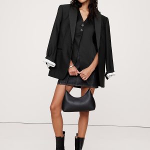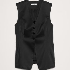 We styled this tailored vest in a longer length with a lapel-free neckline, leaving you to style it layered as a vest or on its own as a top. Here, we reached for an Italian satin fabric with a touch of wool, which adds a touch of warmth and sophistication.