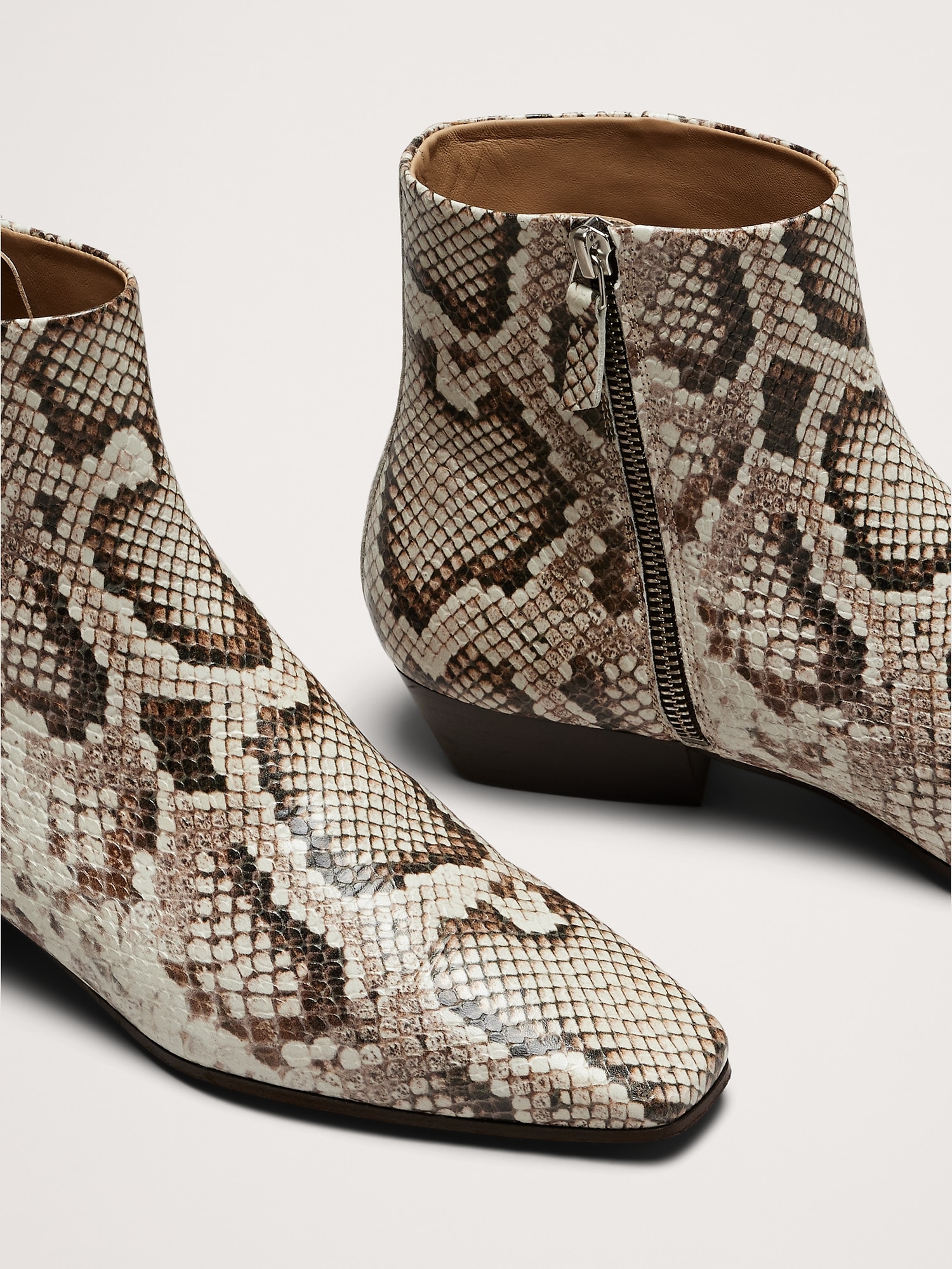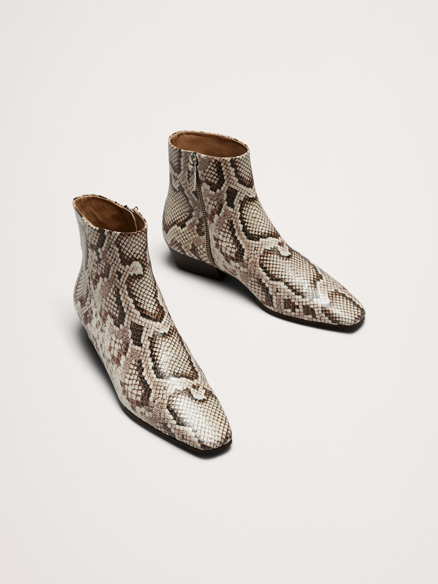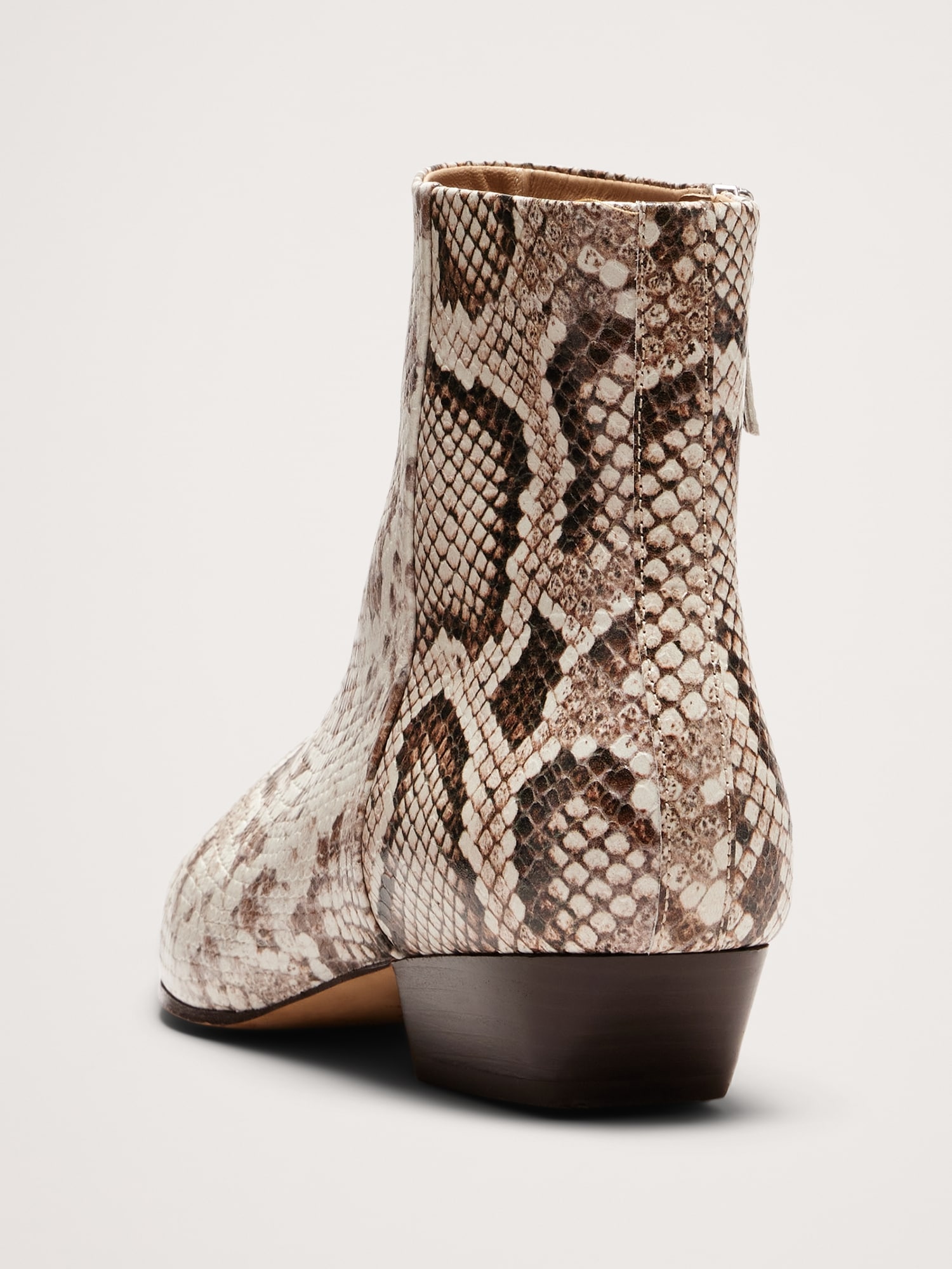 Italian Snake-Print Leather Ankle Boot