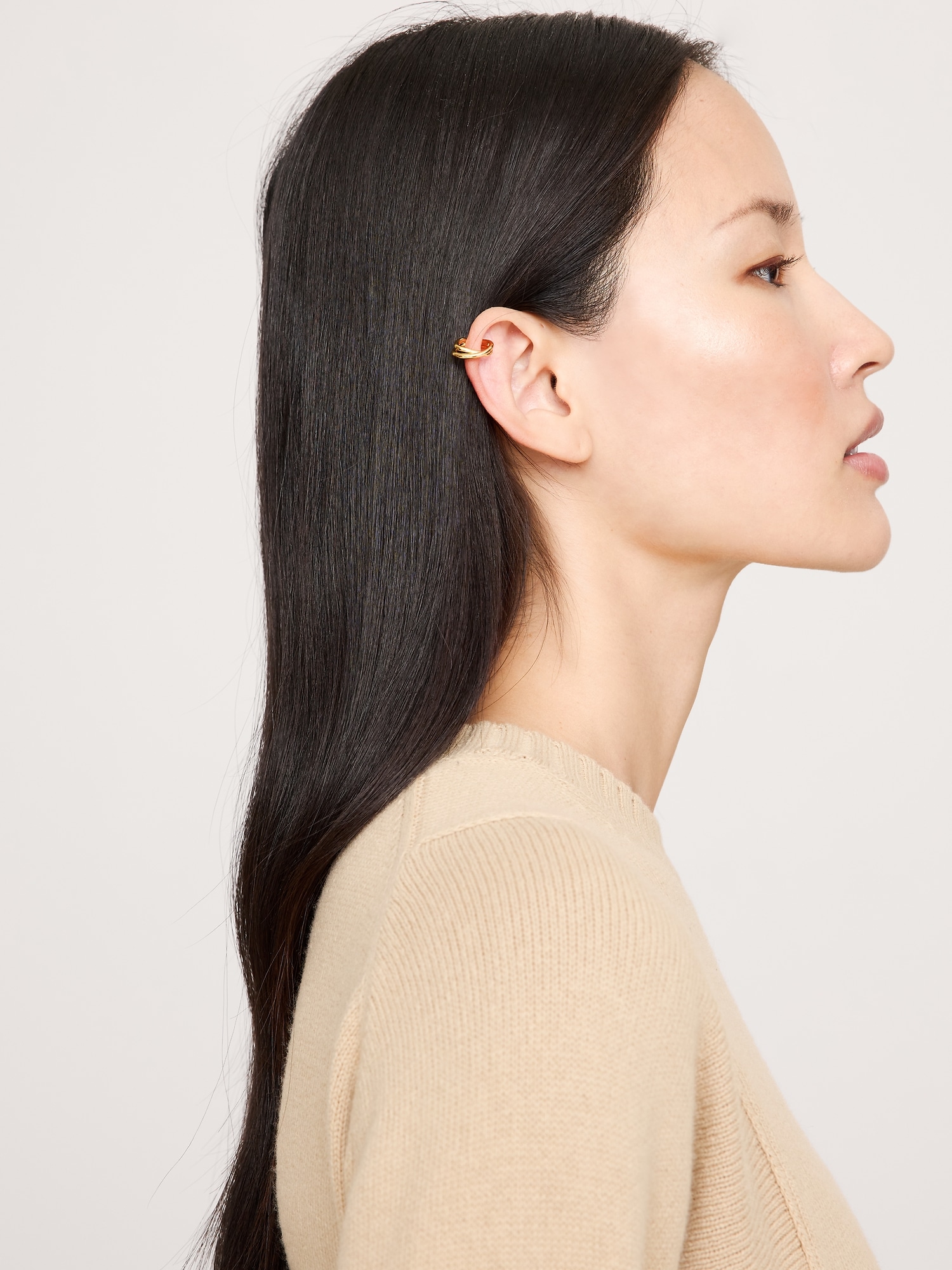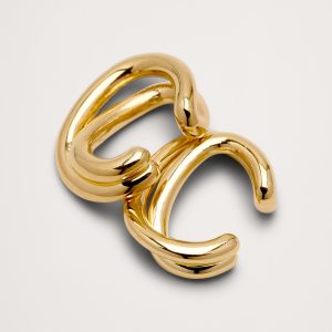 An organic take on an ear cuff designed for pierced and unpierced ears, in 14k-gold or 999-silver plated brass.