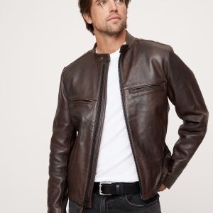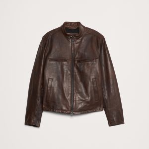 A classic rendering of the timeless moto jacket, complete with all the traditional design details: a banded collar over the neck and grommets under the arms to prevent overheating. This one’s in a premium leather that only gets better with time, developing a rich and unique patina.