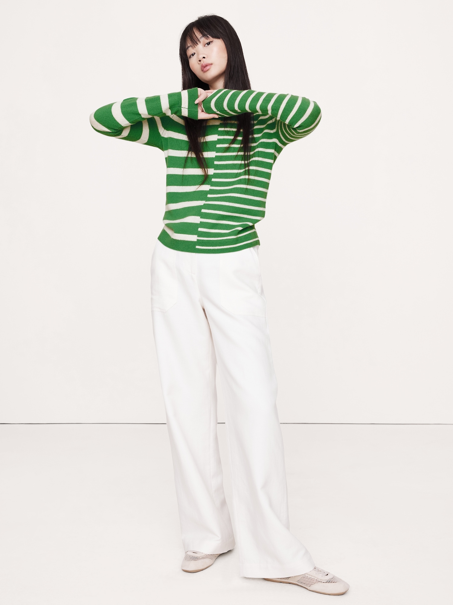 The vibe is lightweight luxury. This updated take on the classic crew-neck sweater has an easy fit through the body. We knitted it from our lightweight cashmere yarn, selected for its luxurious softness and all-season weight.