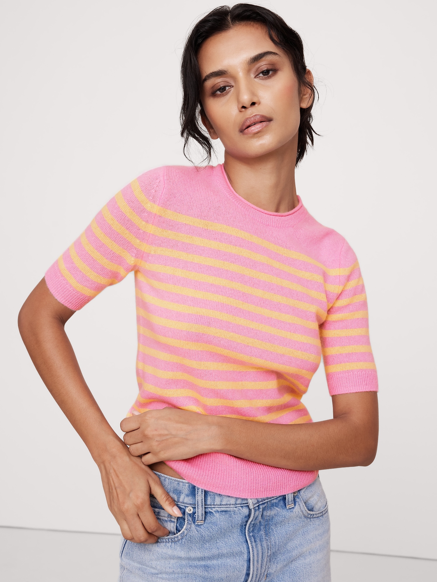 The vibe is lightweight luxury. We reimagined the classic crew-neck tee as a sweater, crafted in our lightweight cashmere.