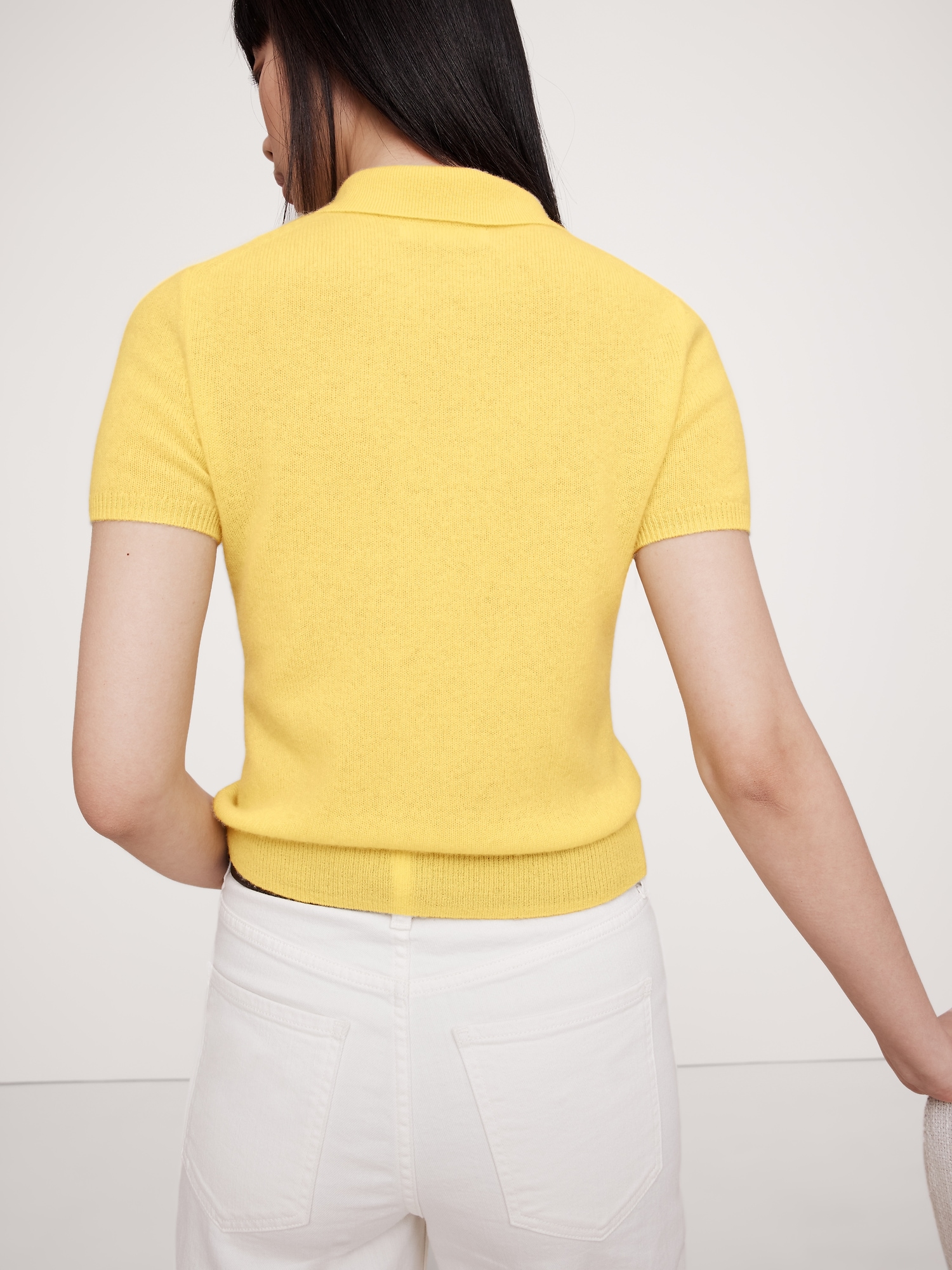 The vibe is lightweight luxury. This classic sweater polo has not-too-tight fit through the body, in our lightweight cashmere yarn.