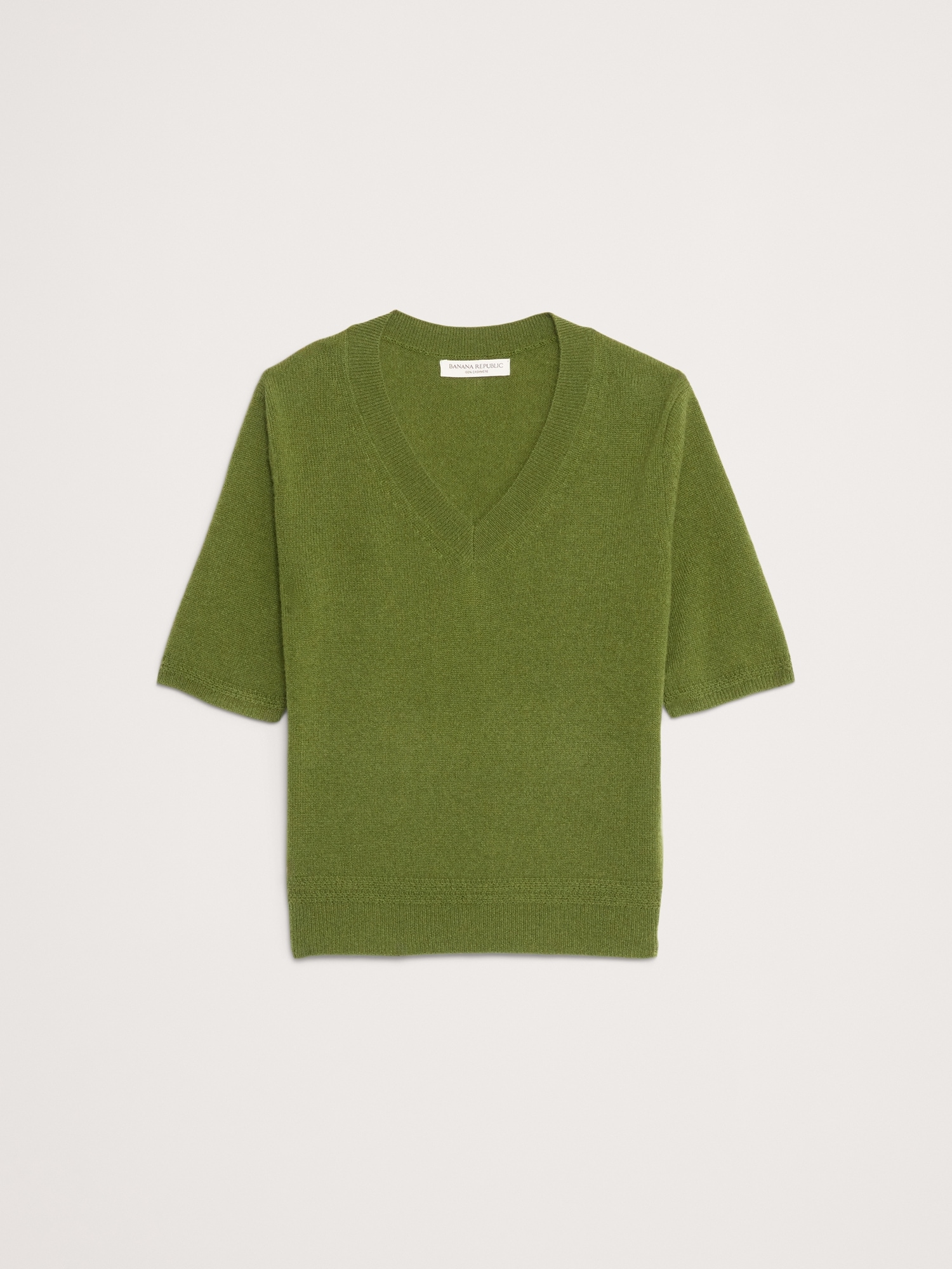 Lightweight Cashmere V-Neck Short-Sleeve Sweater