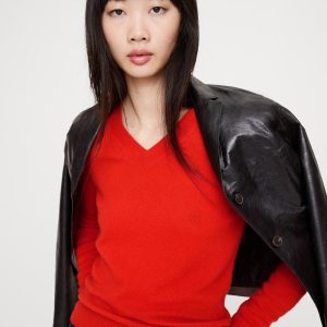 The vibe is lightweight luxury. This updated take on the classic V-neck sweater has not-too-loose fit through the body. We knitted it from our lightweight cashmere yarn, selected for its luxurious softness and all-season weight.