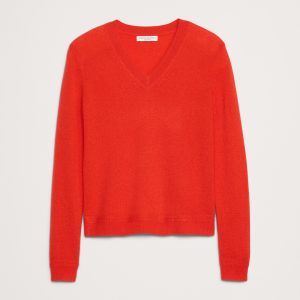 The vibe is lightweight luxury. This updated take on the classic V-neck sweater has not-too-loose fit through the body. We knitted it from our lightweight cashmere yarn, selected for its luxurious softness and all-season weight.