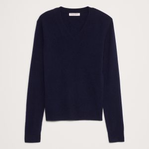 The vibe is lightweight luxury. This updated take on the classic V-neck sweater has not-too-loose fit through the body. We knitted it from our lightweight cashmere yarn, selected for its luxurious softness and all-season weight.