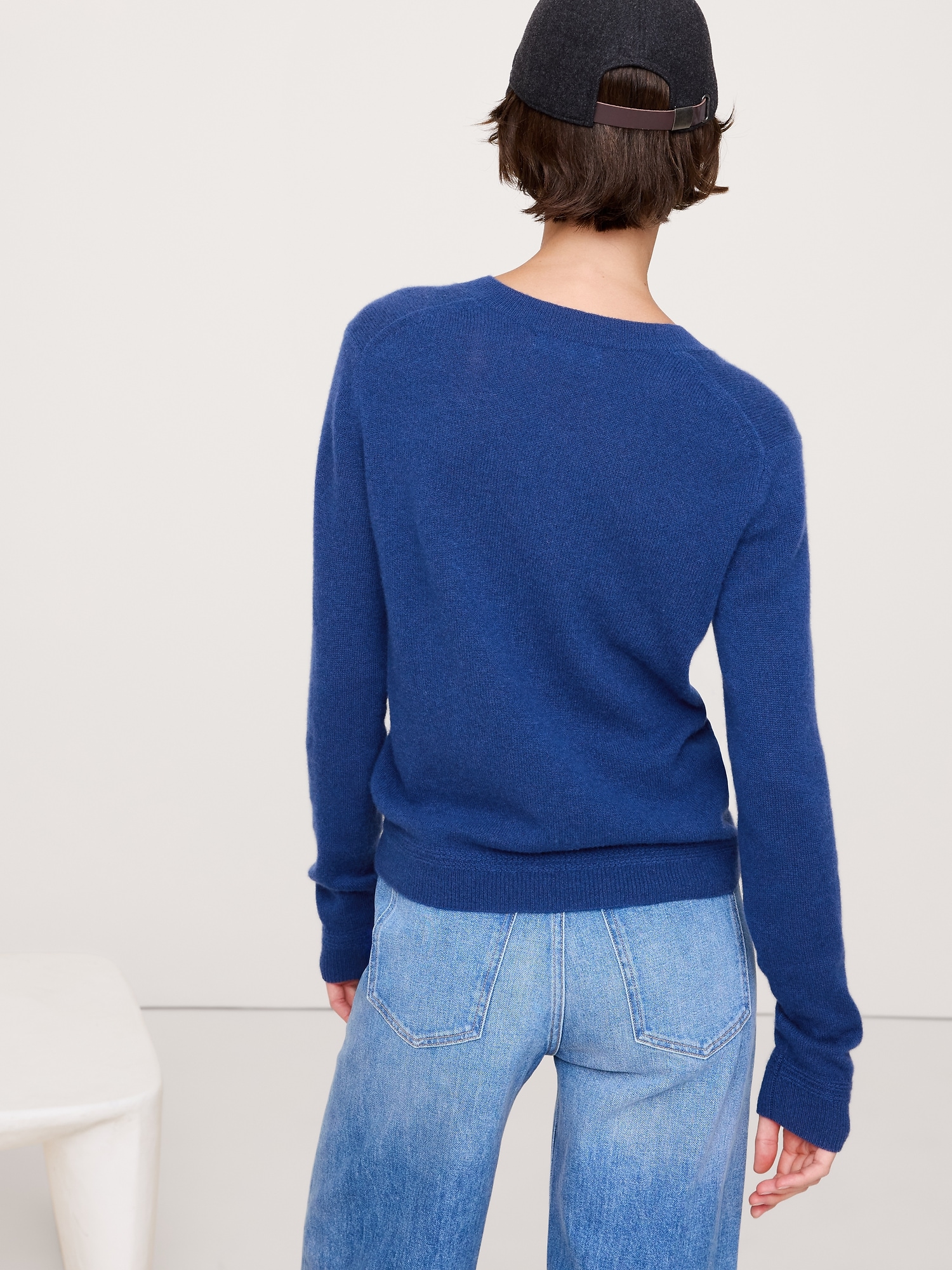 The vibe is lightweight luxury. This updated take on the classic V-neck sweater has not-too-loose fit through the body. We knitted it from our lightweight cashmere yarn, selected for its luxurious softness and all-season weight.