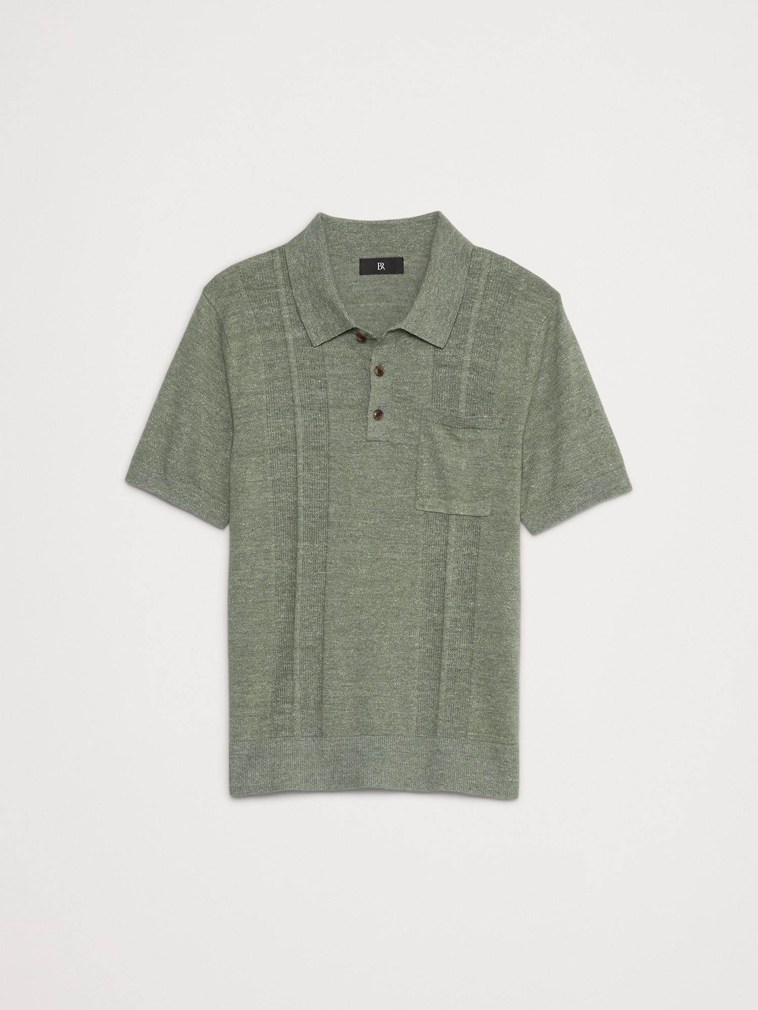 We’re reintroducing our tried-and-true linen-cotton sweaters because we love them so much. Here, a classic sweater polo with striped accents to capture the look and feel of true vintage.