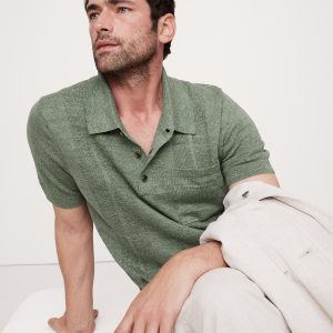 We’re reintroducing our tried-and-true linen-cotton sweaters because we love them so much. Here, a classic sweater polo with striped accents to capture the look and feel of true vintage.
