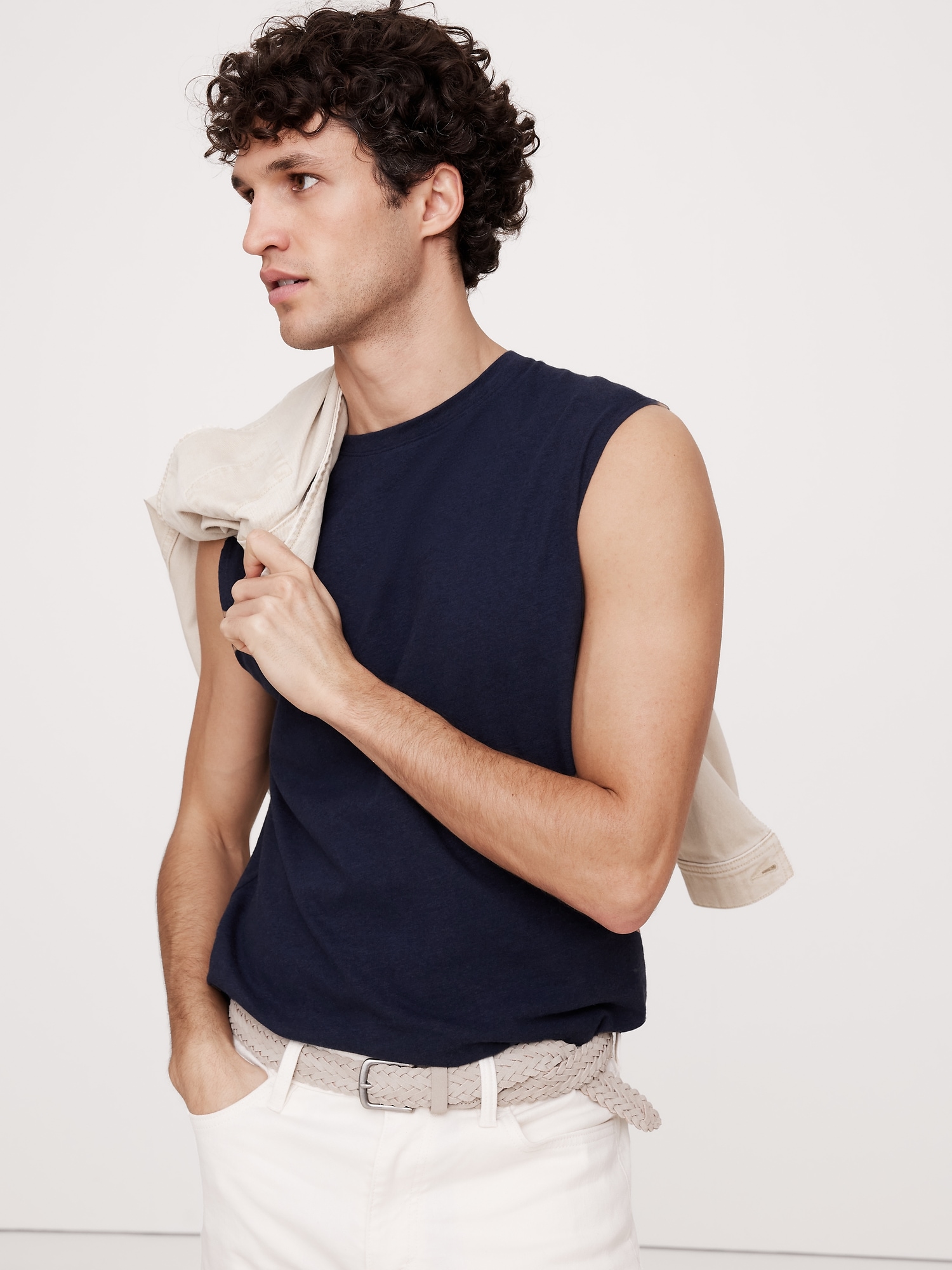 We’re on a mission to make a great tank for Summer. This one delivers with a light jersey made from linen and cotton, so it’s ideal in hot, humid weather.