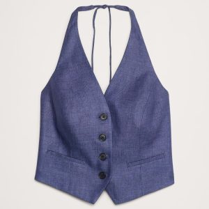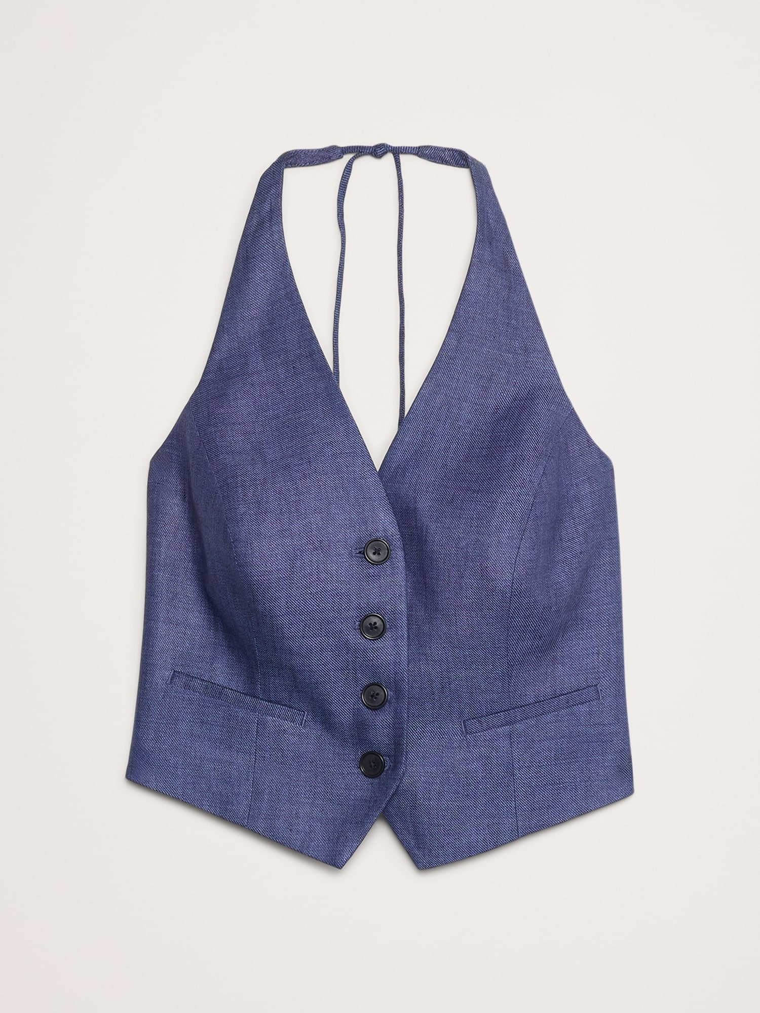 Made from luxurious linen, we cut this vest with a halter neck that ties at back. Style with linen pants and flat sandals, or dress it up with a linen midi skirt and statement jewelry.