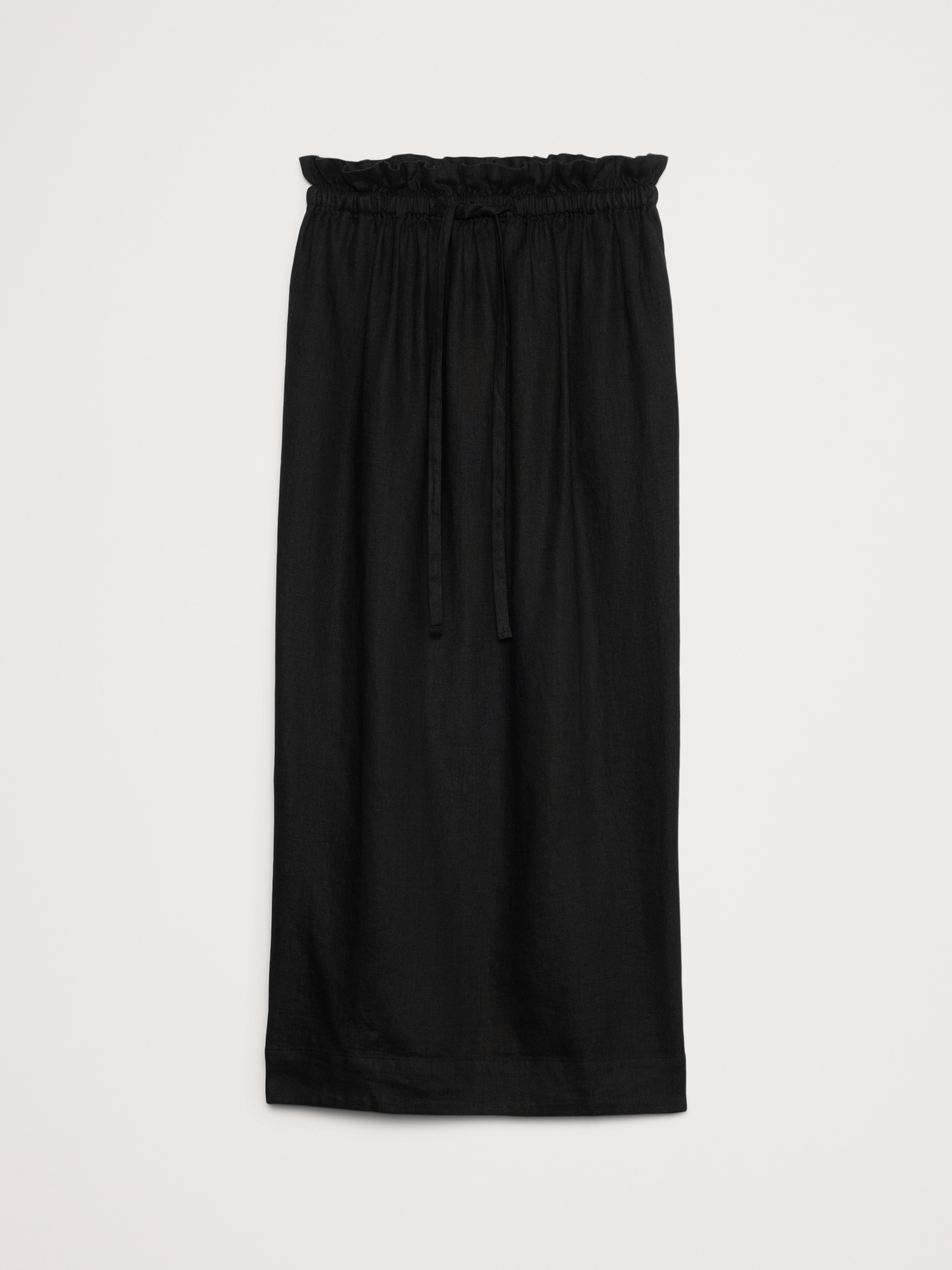 The vibe is off-duty. This column-style skirt has drawstring waist and a straight fit through the body, cut from 100% certified-European linen—an ideal choice in hot, humid weather.
