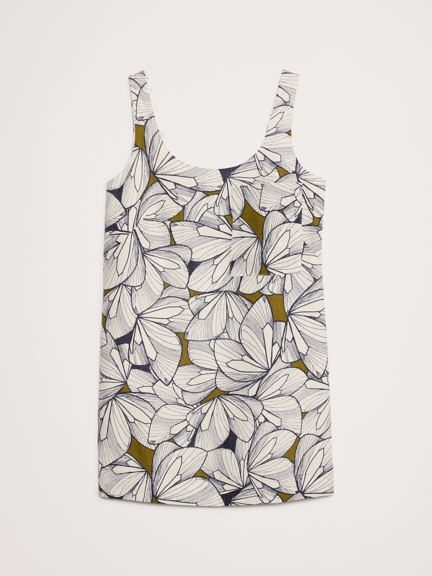 A classic, sleeveless shift dress. We added a chest pocket and cut it in our premium, certified European flax linen—an ideal choice for hot, humid weather.