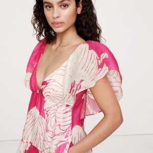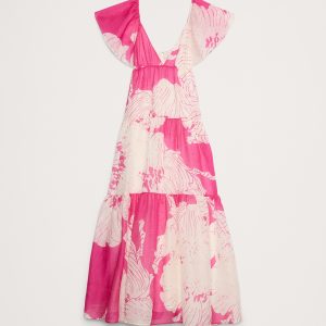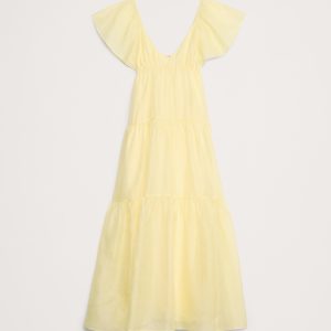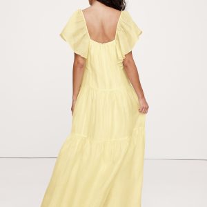 A super-special dress. This tiered maxi dress is all about the details: a flutter sleeve, empire waist, and flowy maxi skirt. Cut from a lightweight blend of linen and silk, it looks (and feels) amazing on.