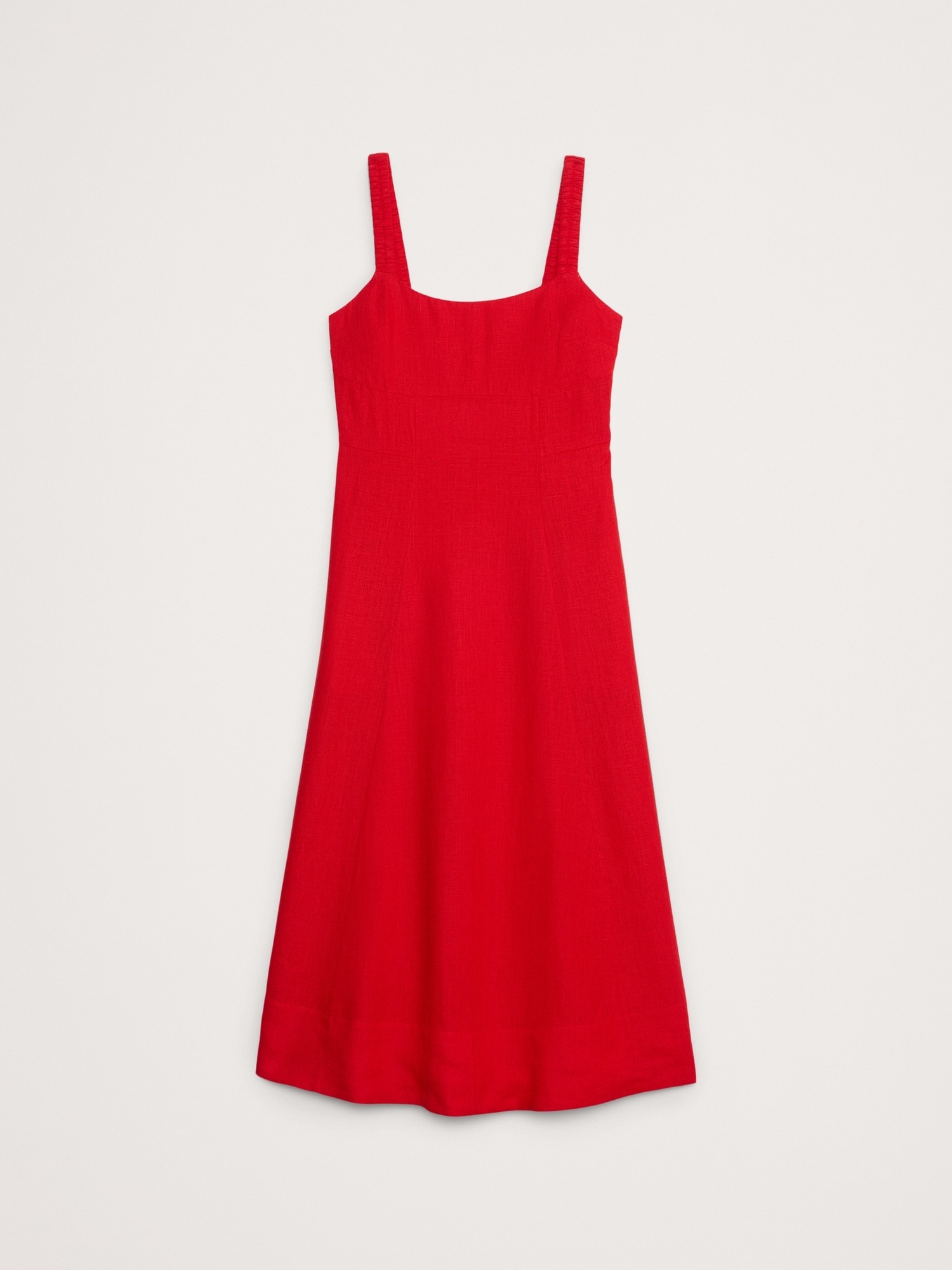 Linen Square-Neck Midi Dress