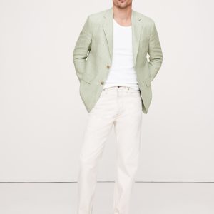 Designed with warm climates in mind, this sleek suit jacket is cut from premium linen—seen here in a soft délavé blue. Plus, we left the back unlined so it stays cool.