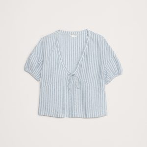 Linen Tie-Front V-Neck Top