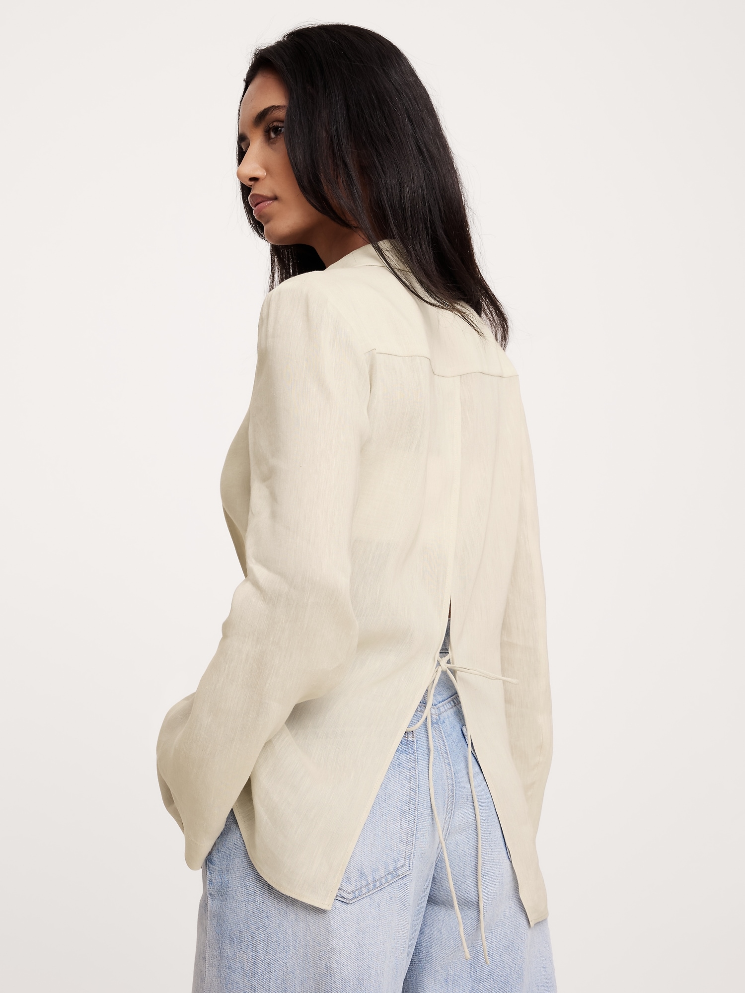 Linen-Viscose Open-Back Blazer
