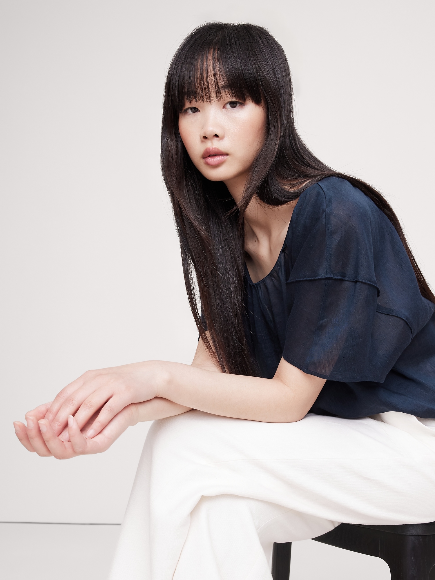 Ideal for warm weather, this top is cut from a lightweight blend of linen and viscose rayon (so it’s silky soft).