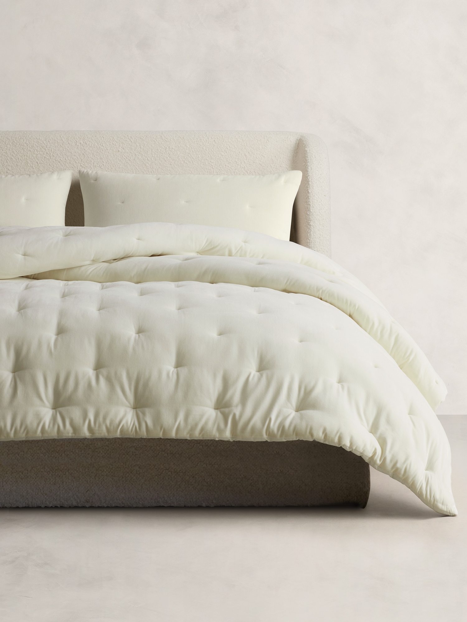 Weighty and warm, this tufted quilt is cut from cotton velvet with a reverse side of cotton sateen. Each quilt is filled with our premium down alternative for a lofty finish that layers well through cooler seasons.